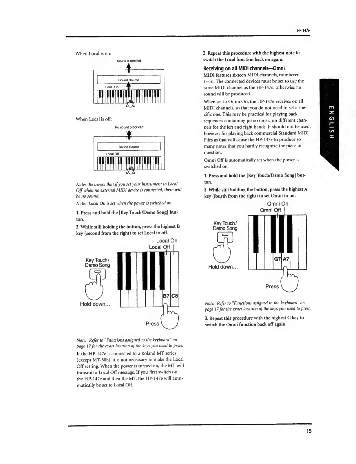 Roland HP 147 e - MIDI Settings and Modes; Local On;Off Function; Omni On;Off Mode