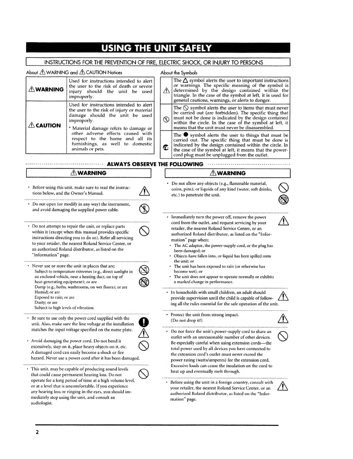 Roland HP 147 e - Safe Usage Guidelines; Understanding Safety Notices; General Operating Precautions
