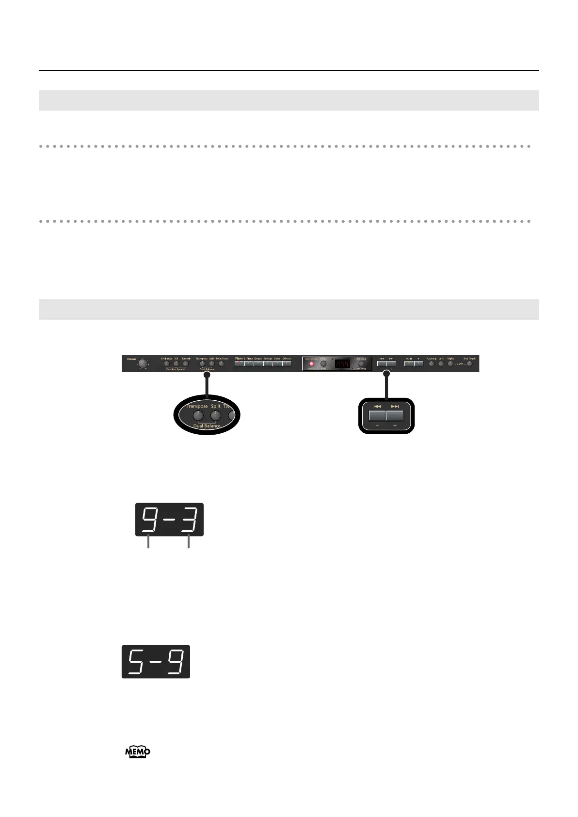 Press the [Transpose] button or [Split] button to return to the tone select