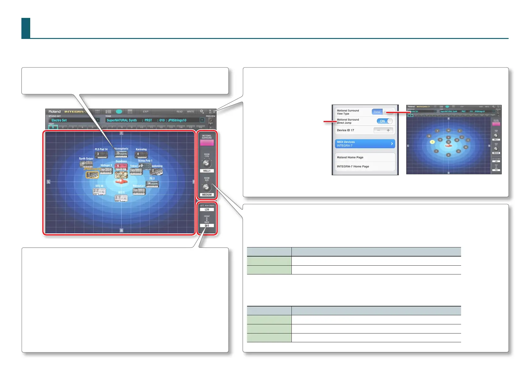 The MOTIONAL SURROUND screen is organized as follows.