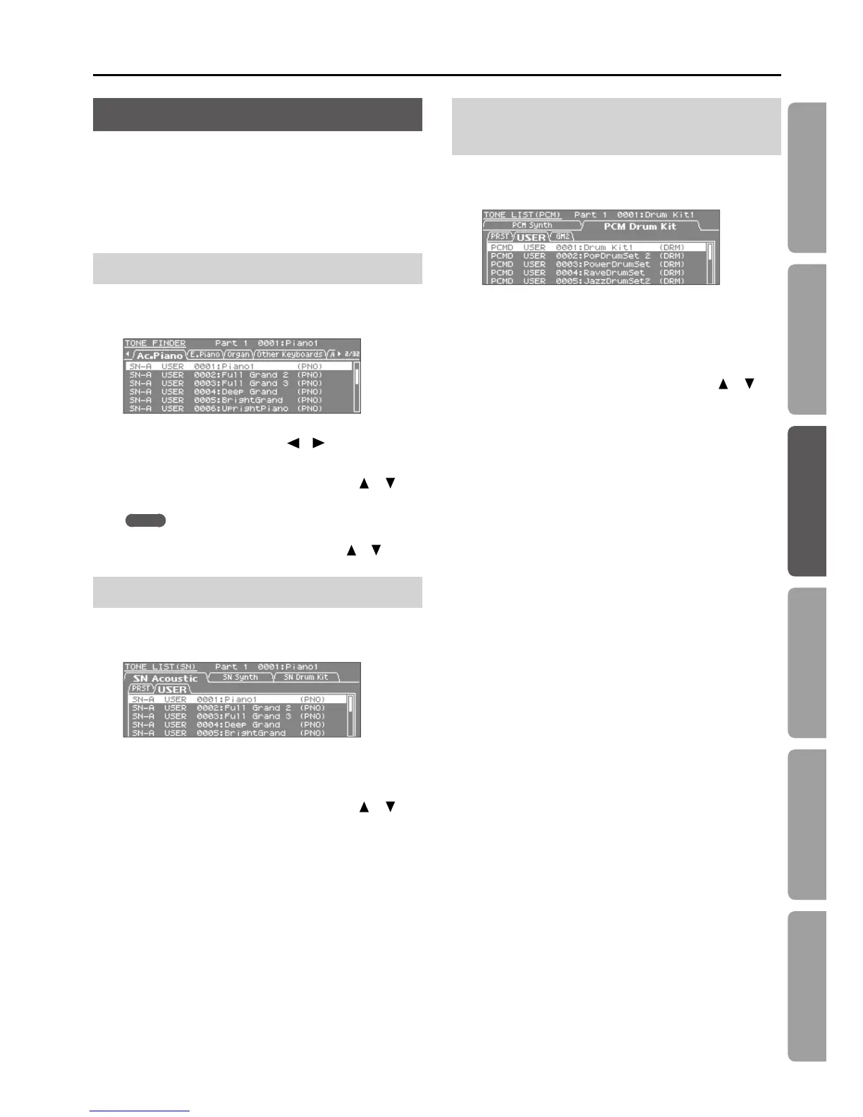 Sélectionner un Tone par type/banque