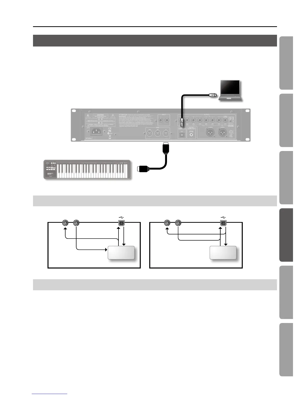 Si vous branchez un ordinateur et un clavier MIDI à l’INTEGRA-7 comme indiqué dans l’illustration et si vous activez la fonction “USB-MIDI Thru” (“ON”),