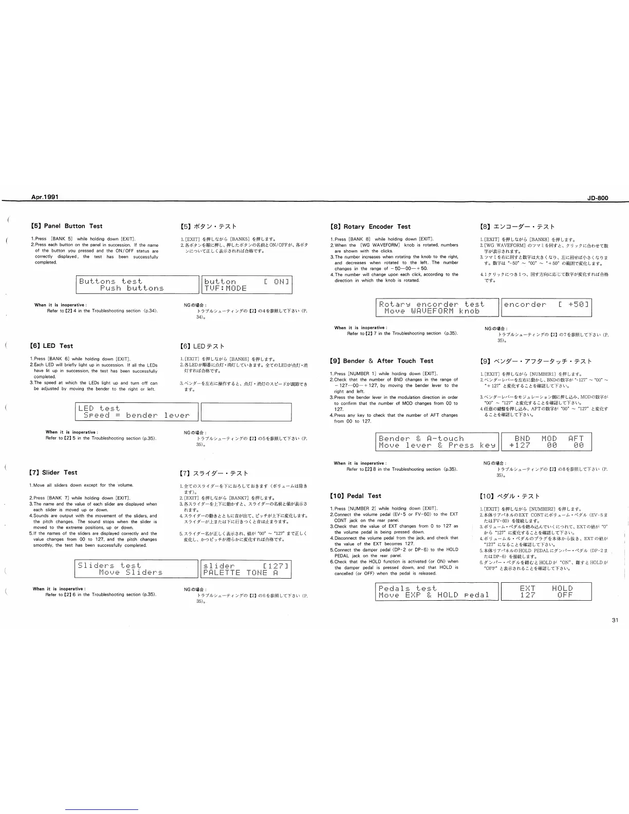 Roland JD-800 - TEST MODE PROCEDURES (CONTINUED); Panel Button Test; LED Test; Slider Test
