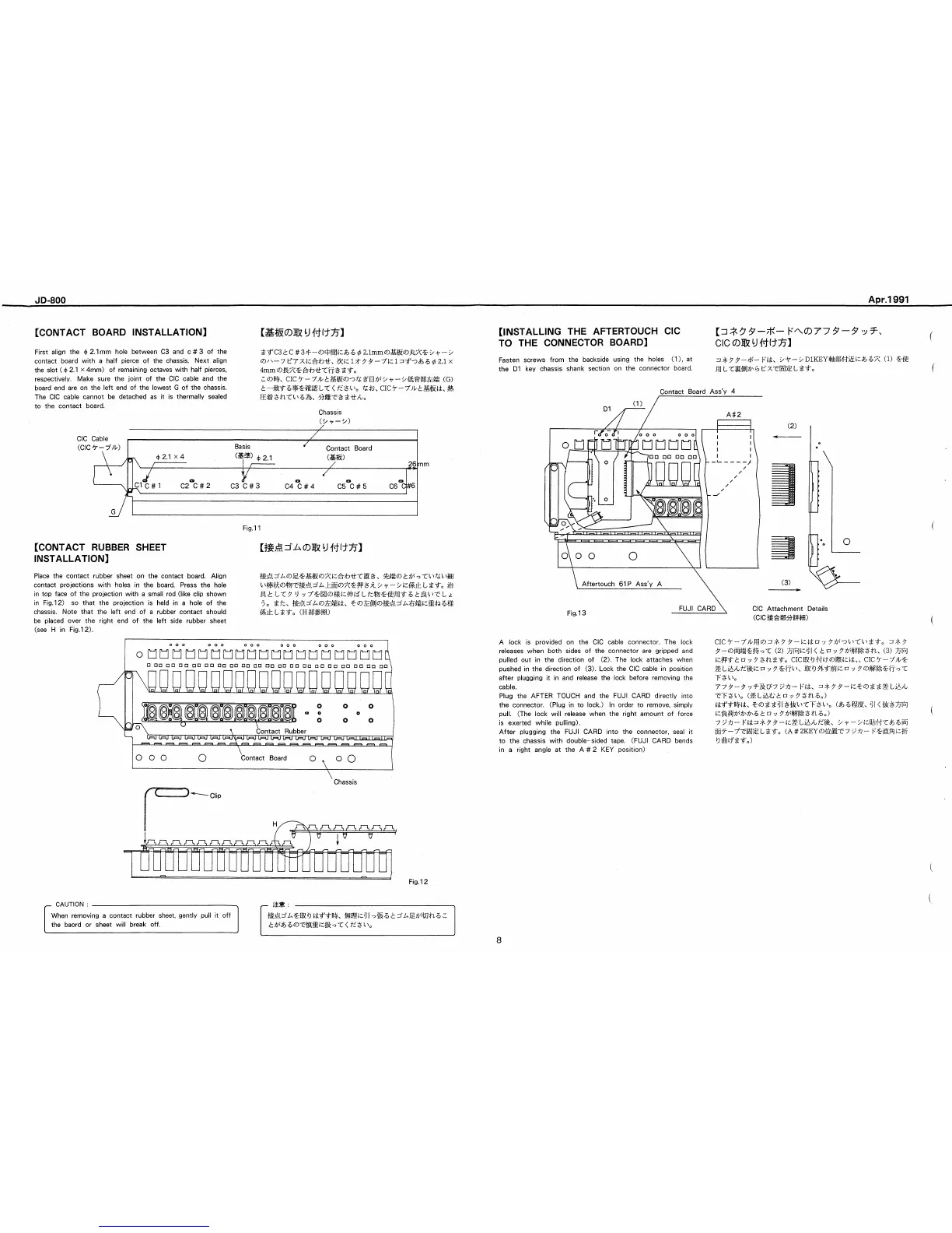 Roland JD-800 - BOARD INSTALLATION PROCEDURES; Contact Board Installation; Aftertouch CIC Installation; Contact Rubber Sheet Installation