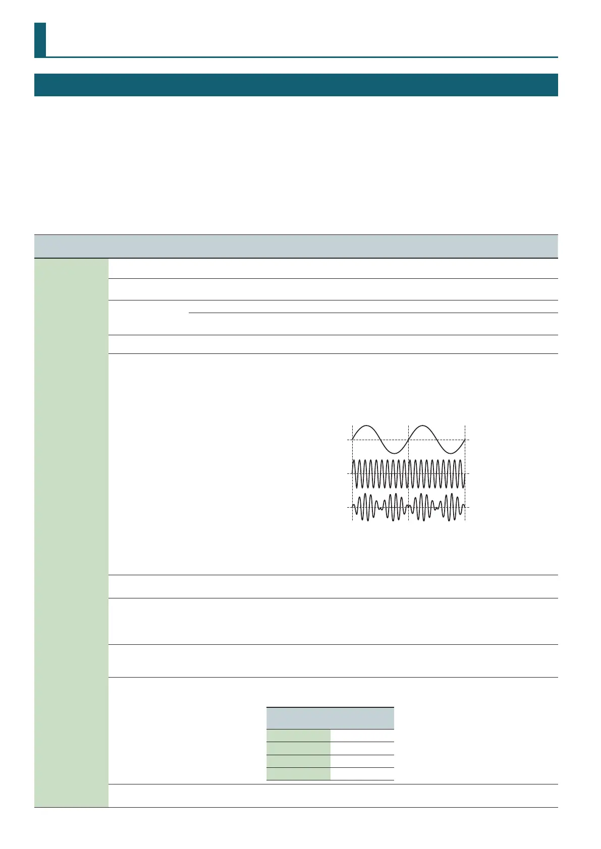 Setting the partial 1 OSC and the partial 2 OSC to dierent pitches will make the ring modulator
