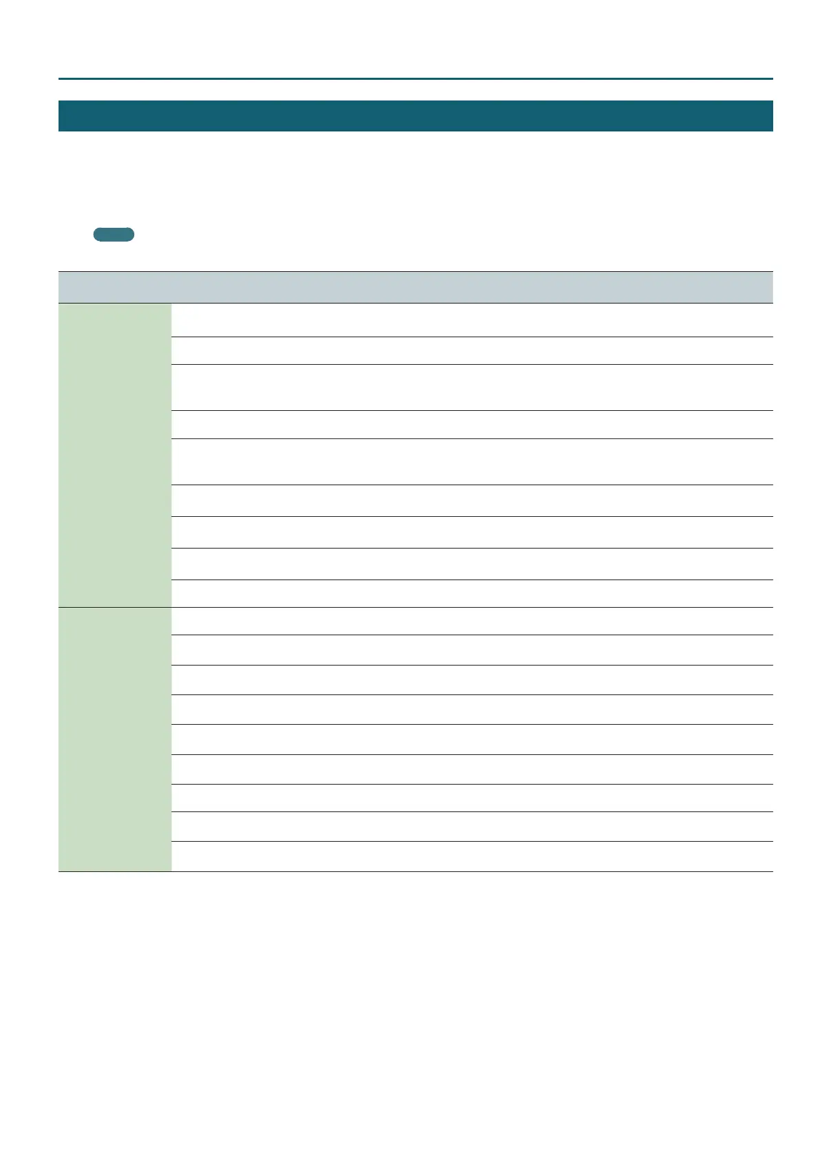 OFF, ON Turns each part’s arpeggio switch on/o.