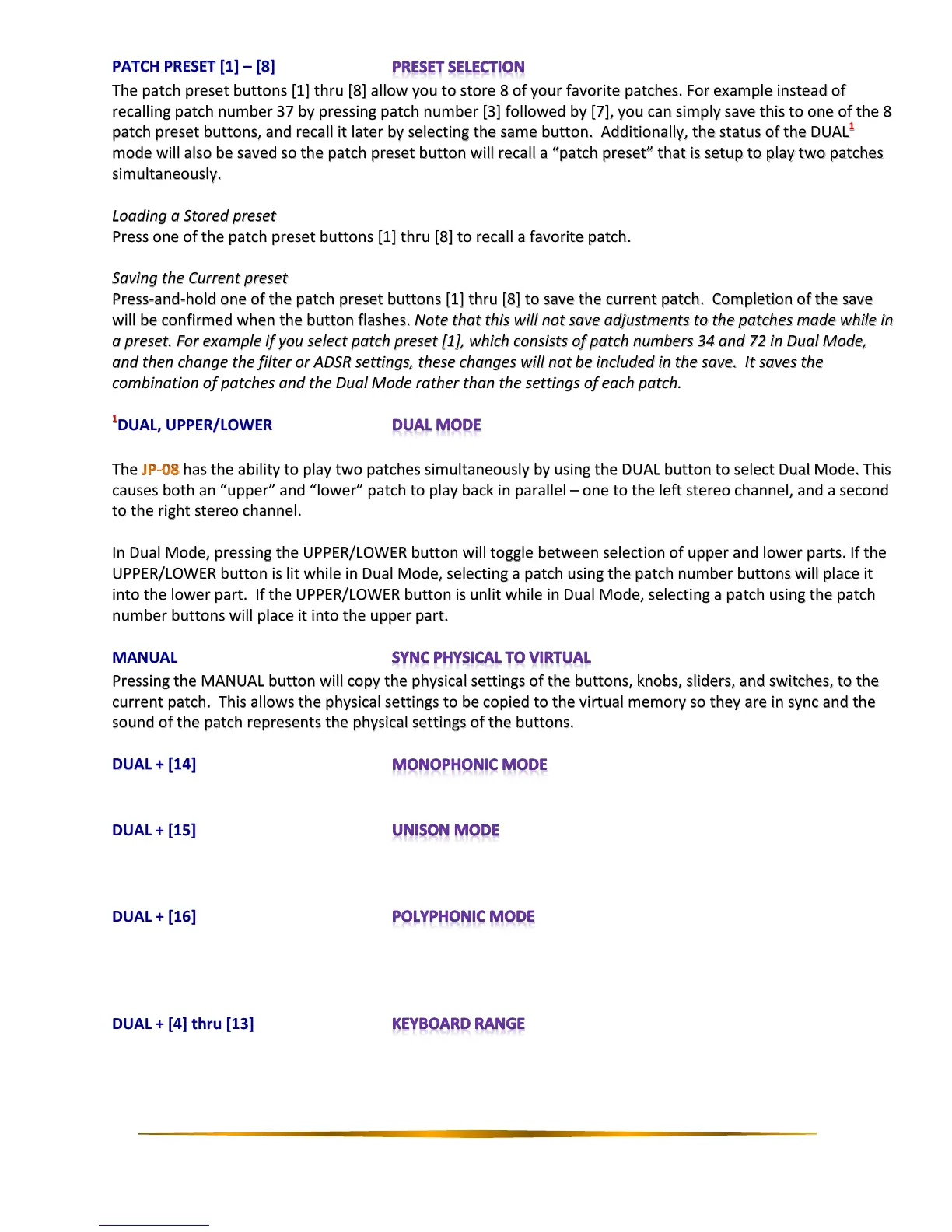 combination of patches and the Dual Mode rather than the settings of each patch.