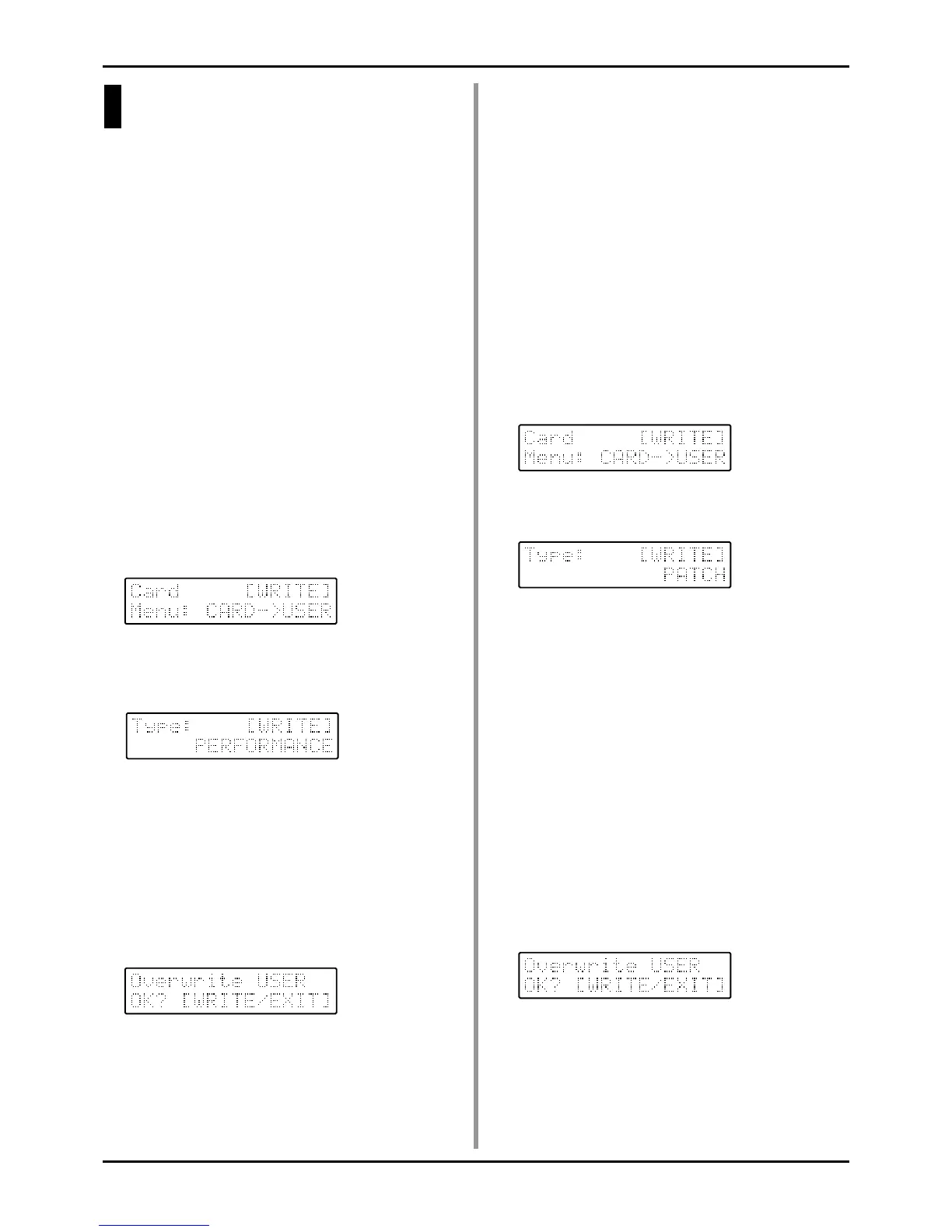 Use [DEC]/[INC] several times to choose “CARD->USER.”