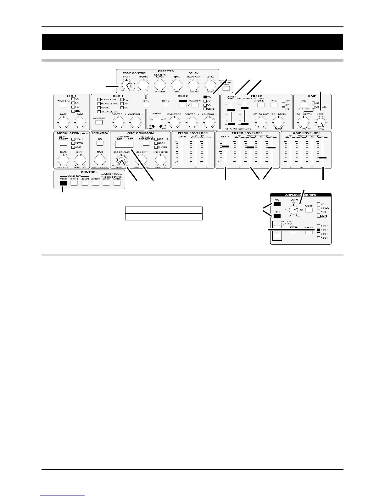 5 Set the ARPEGGIATOR/RPS [RANGE] to “2 OCT.”