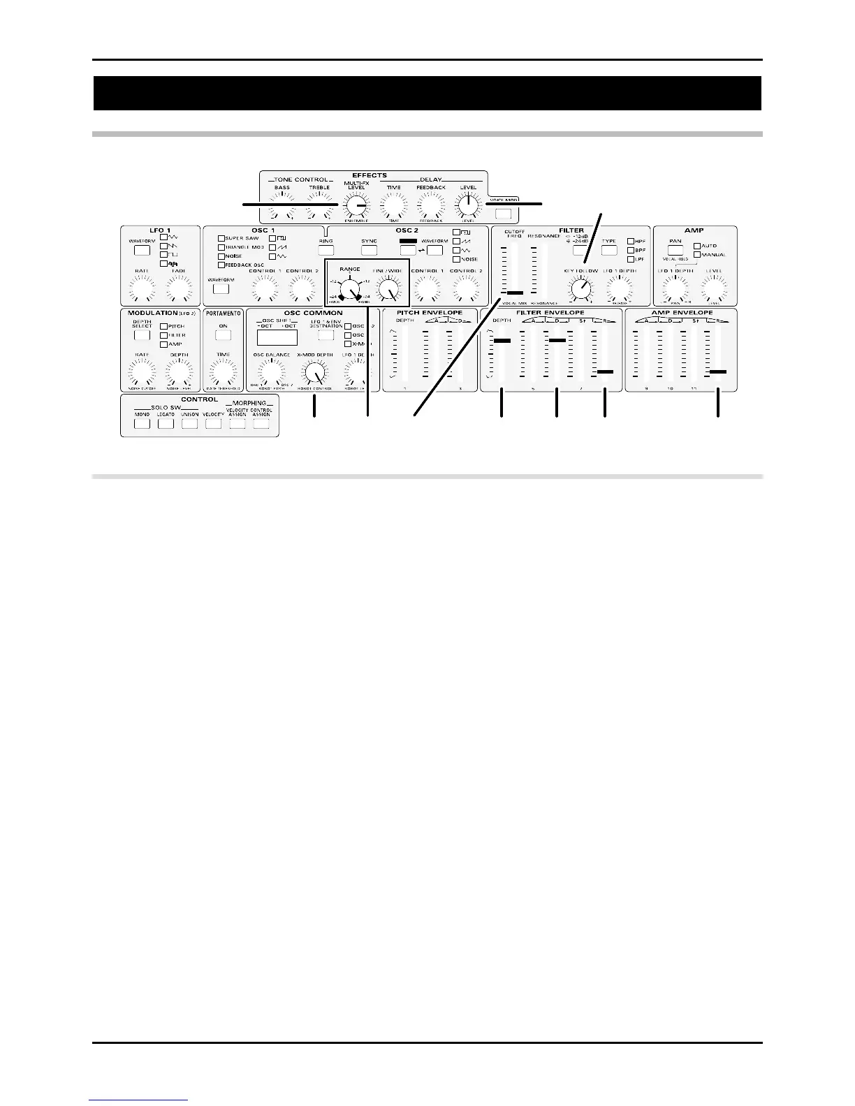 6 Adjust the FILTER ENVELOPE section [DEPTH] to