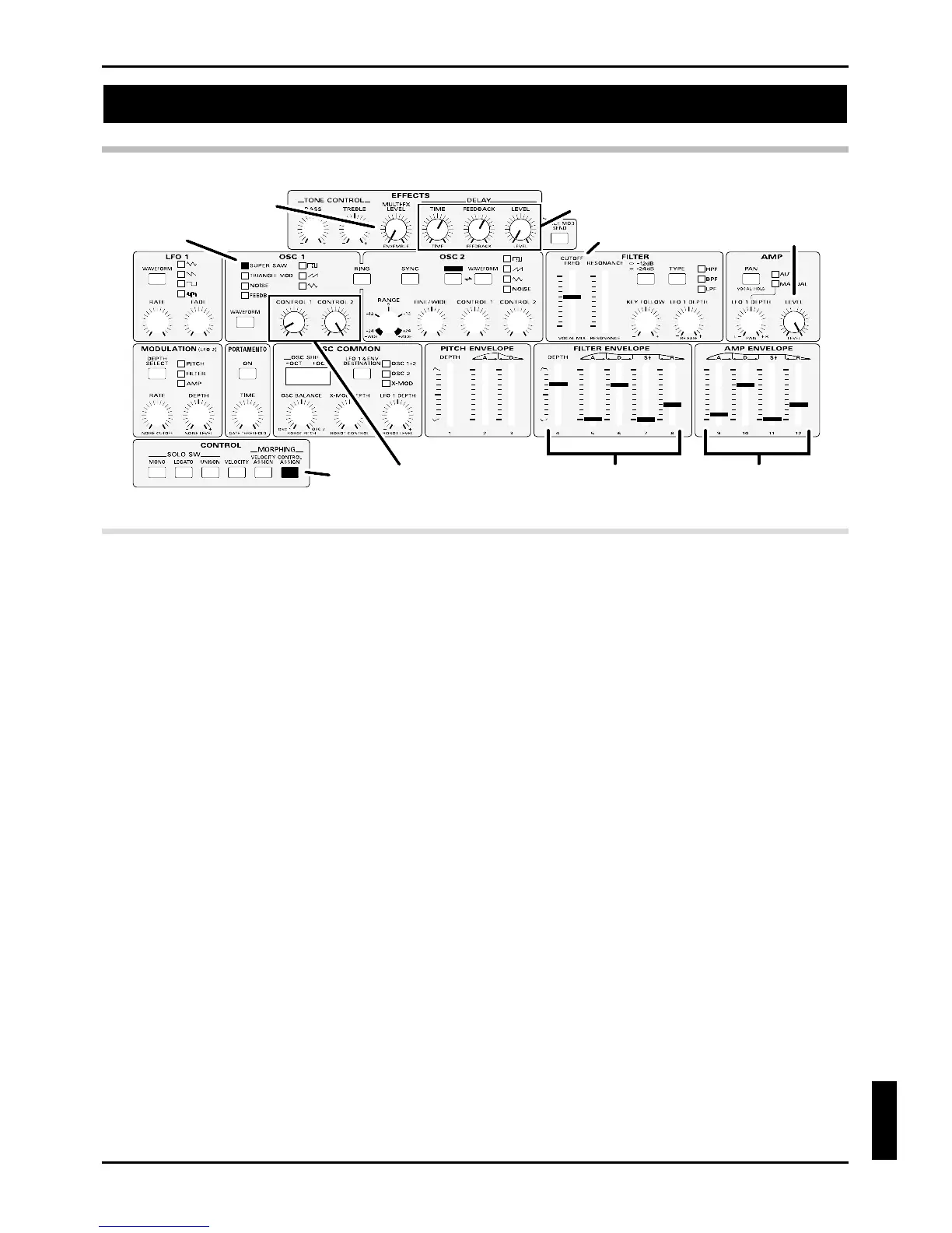 7 In the OSC1 section, set [CONTROL 1](DETUNE)