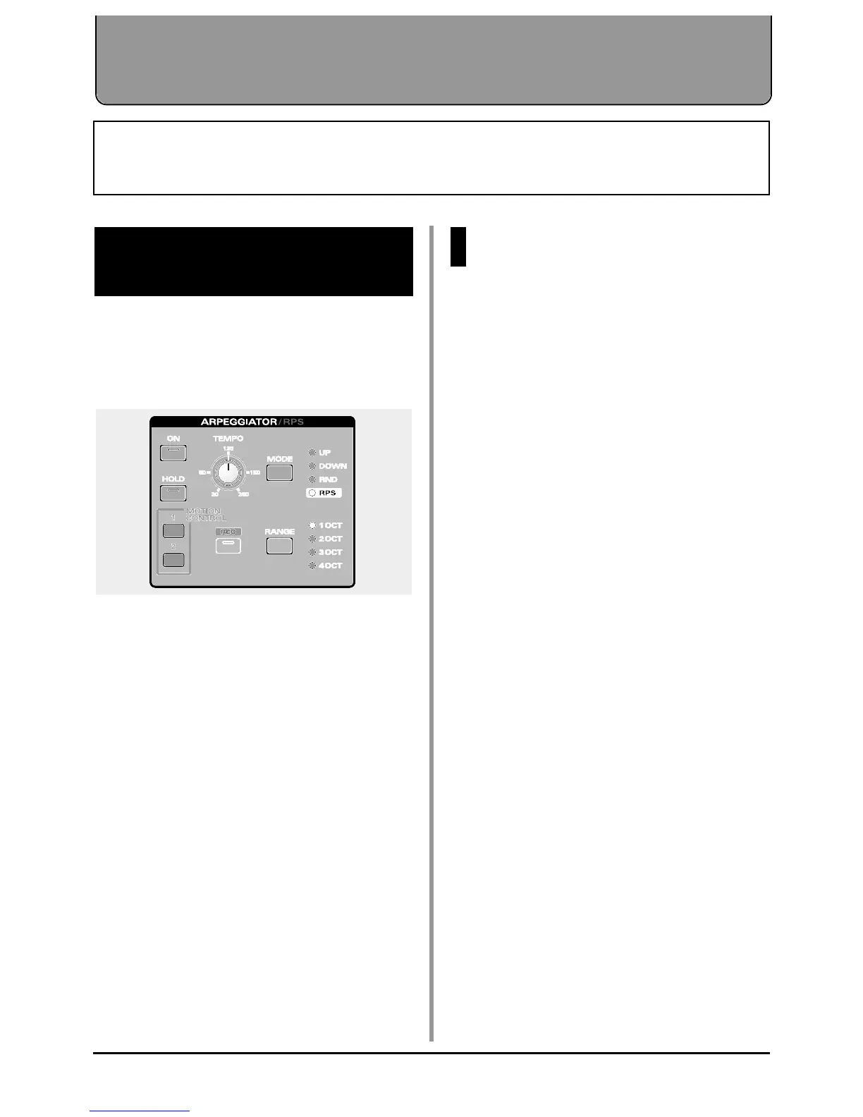 Arpeggiator settings are made in the ARPEGGIATOR/RPS