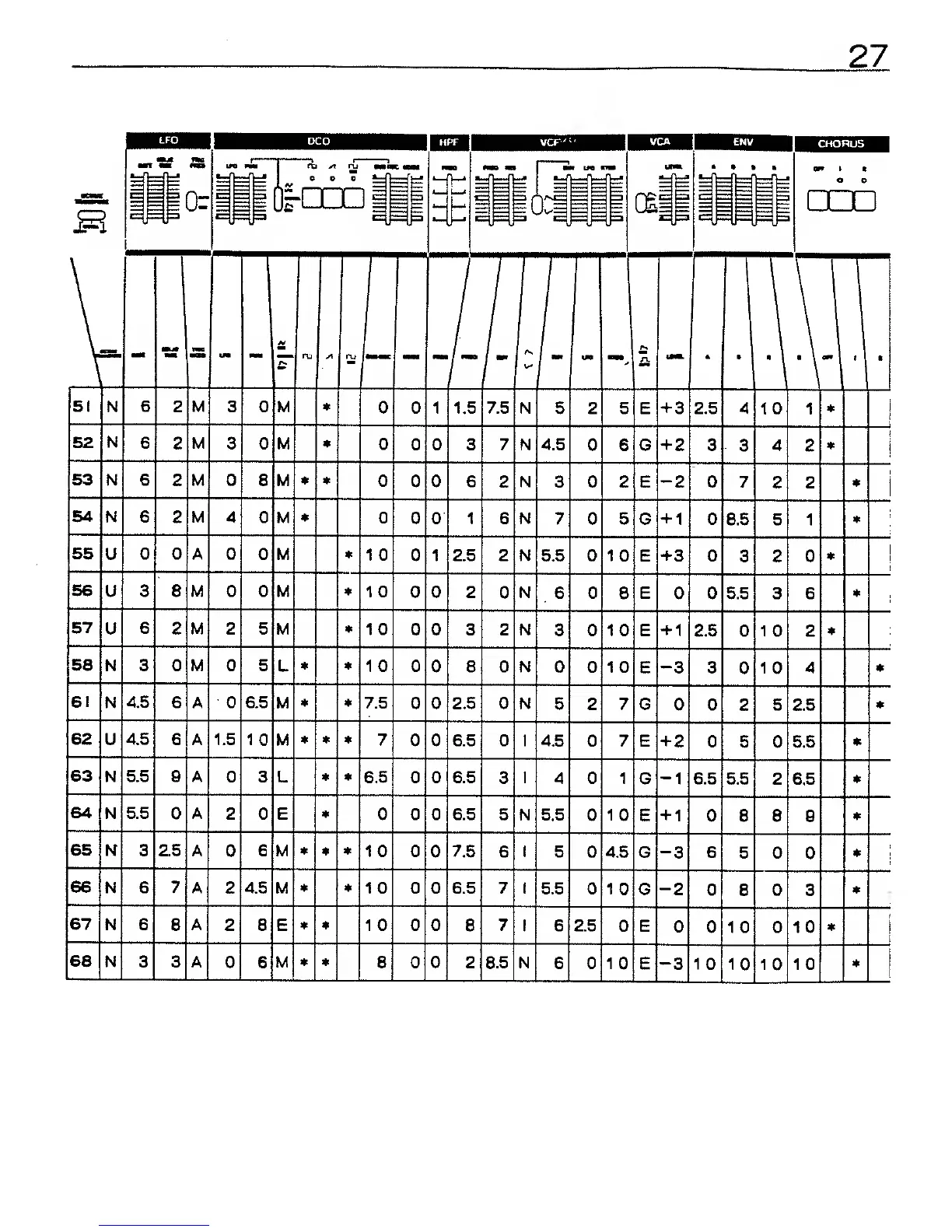 Roland JUNO-60 - Sound Synthesis Memo; Parameter Settings Template