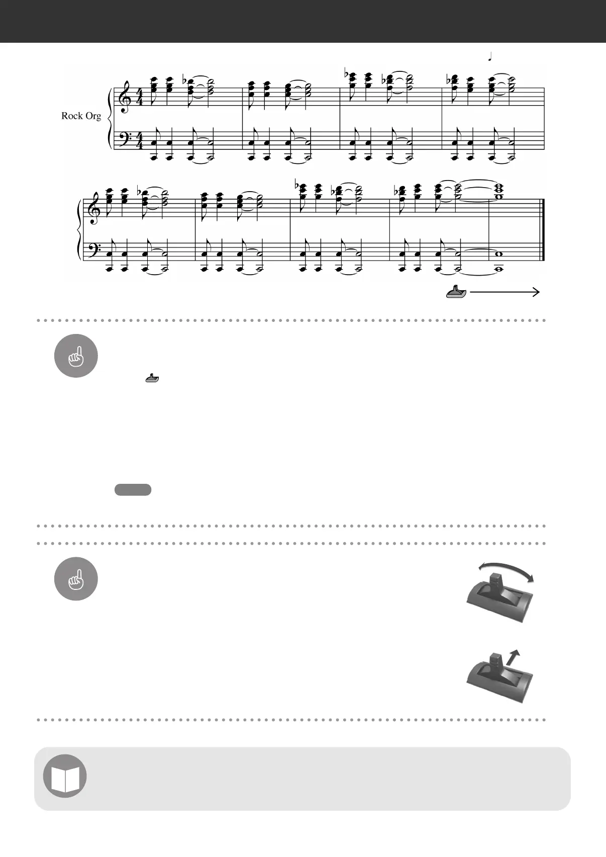 At the “ ” mark in the sample score, press the Hold Pedal (see page 24) and tilt the lever forward with