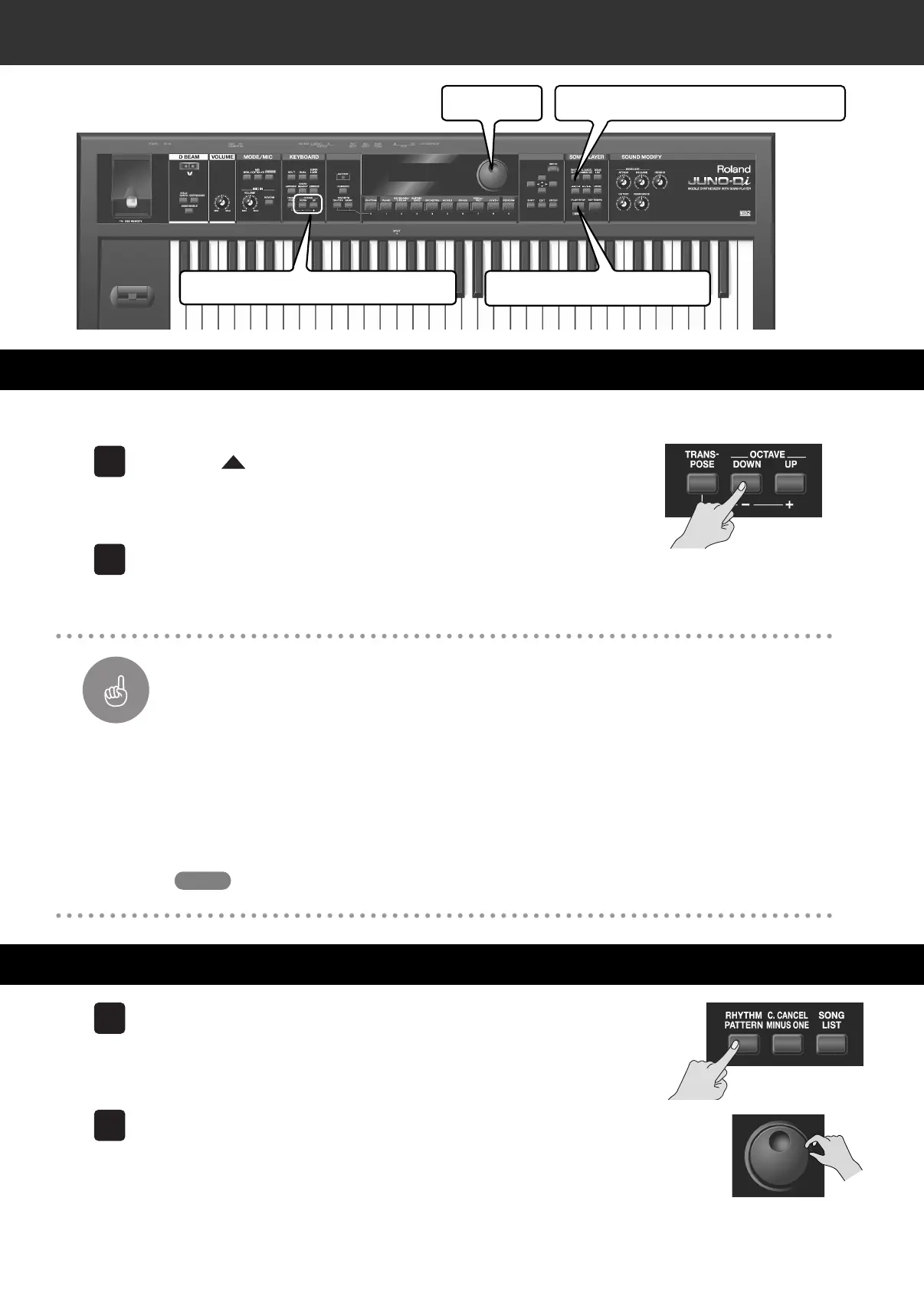 Press the [DOWN] button to shift the pitch of the currently selected tone down an octave, or press the