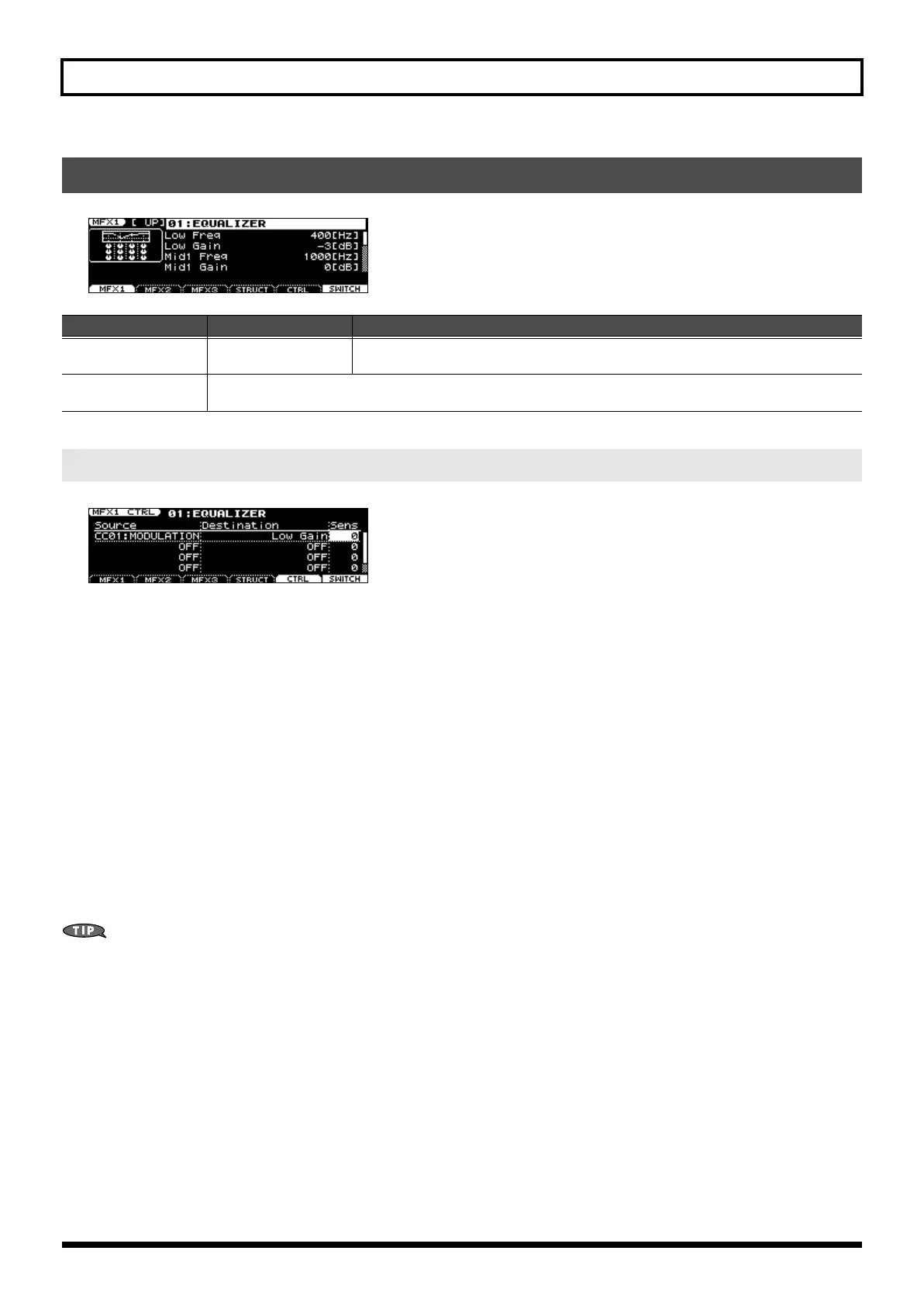 In the MFX screen (p. 84) (or the MFX STRUCTURE screen (p. 86), press [4 (CTRL)] if