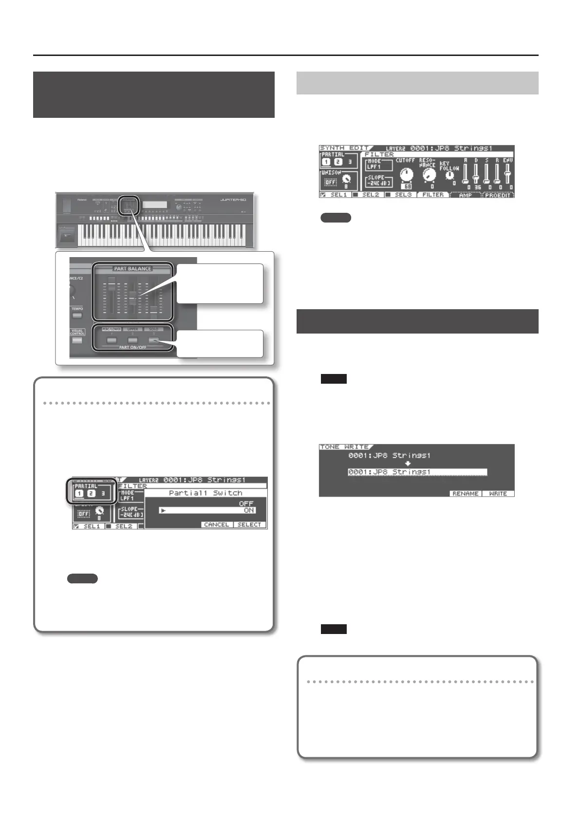 When the SYNTH EDIT screen is displayed, you can use the PART