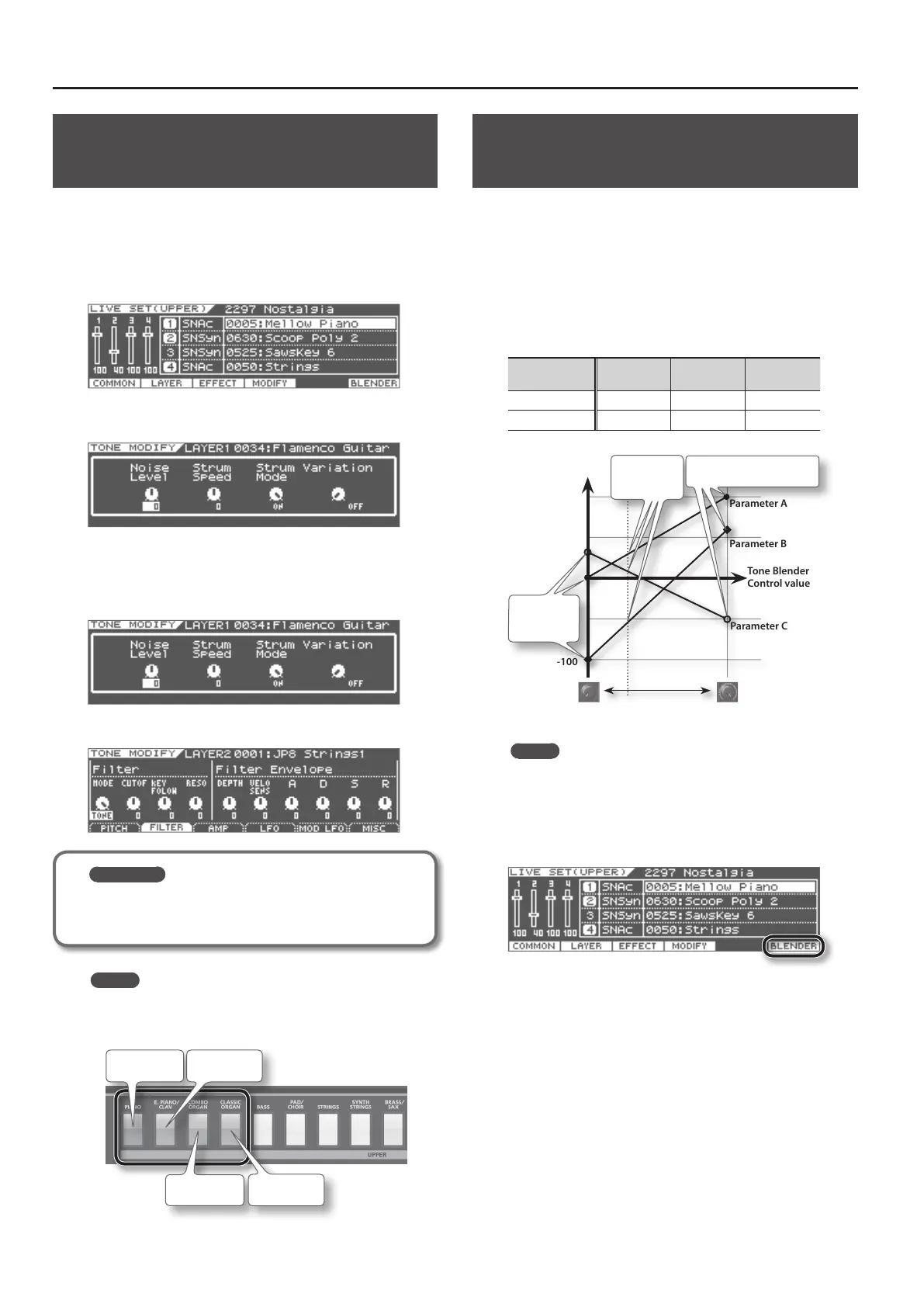 1. In the LIVE SET (UPPER) screen (p. 36), select the tone that