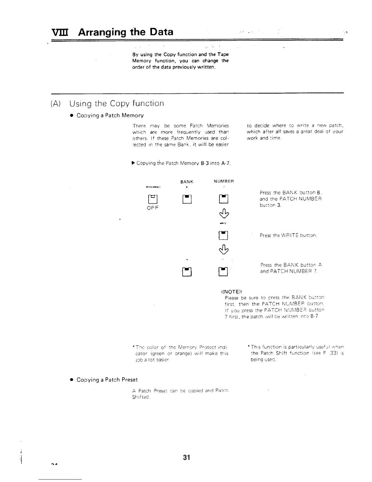Roland Jupiter-6 - Arranging Data; Using the Copy Function