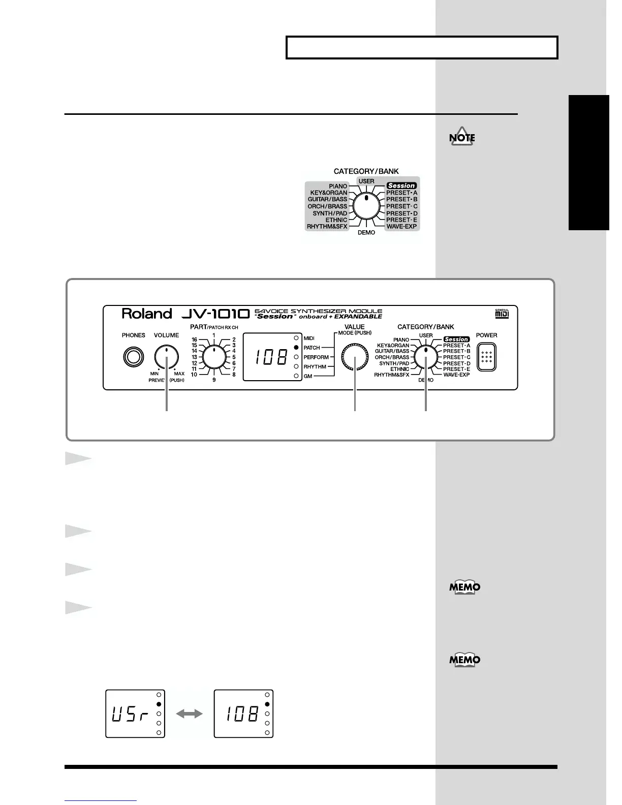 changing the Category and Bank with the CATEGORY/BANK knob, you