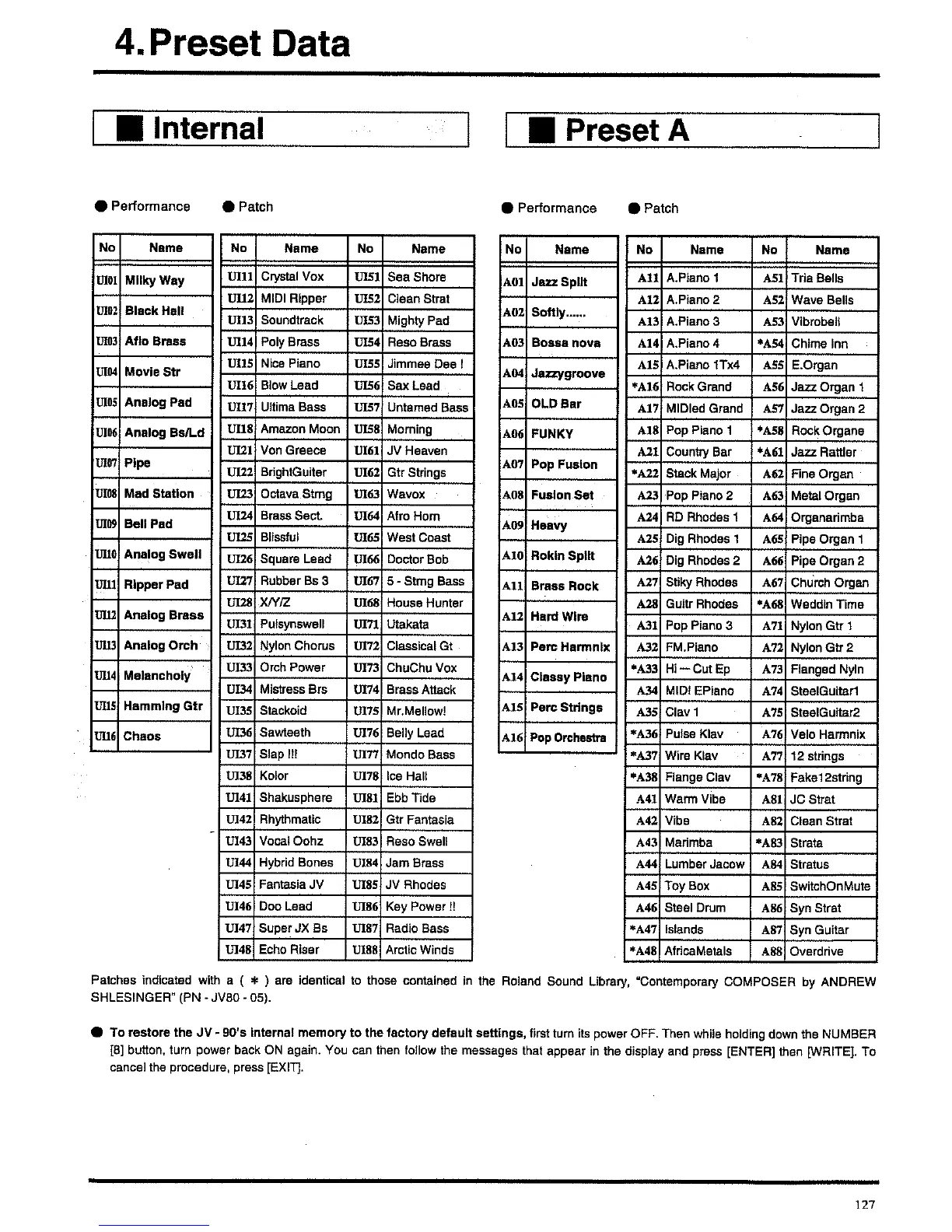 Roland JV-90 - Preset Data