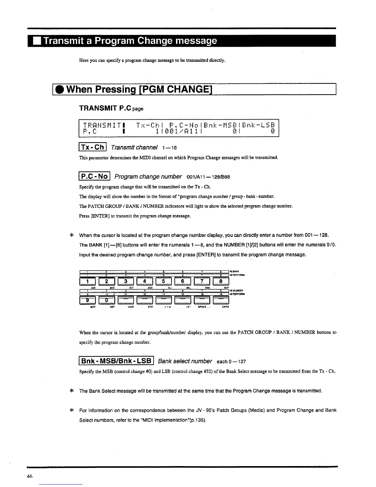 Roland JV-90 - Transmit a Program Change Message; When Pressing PGM CHANGE