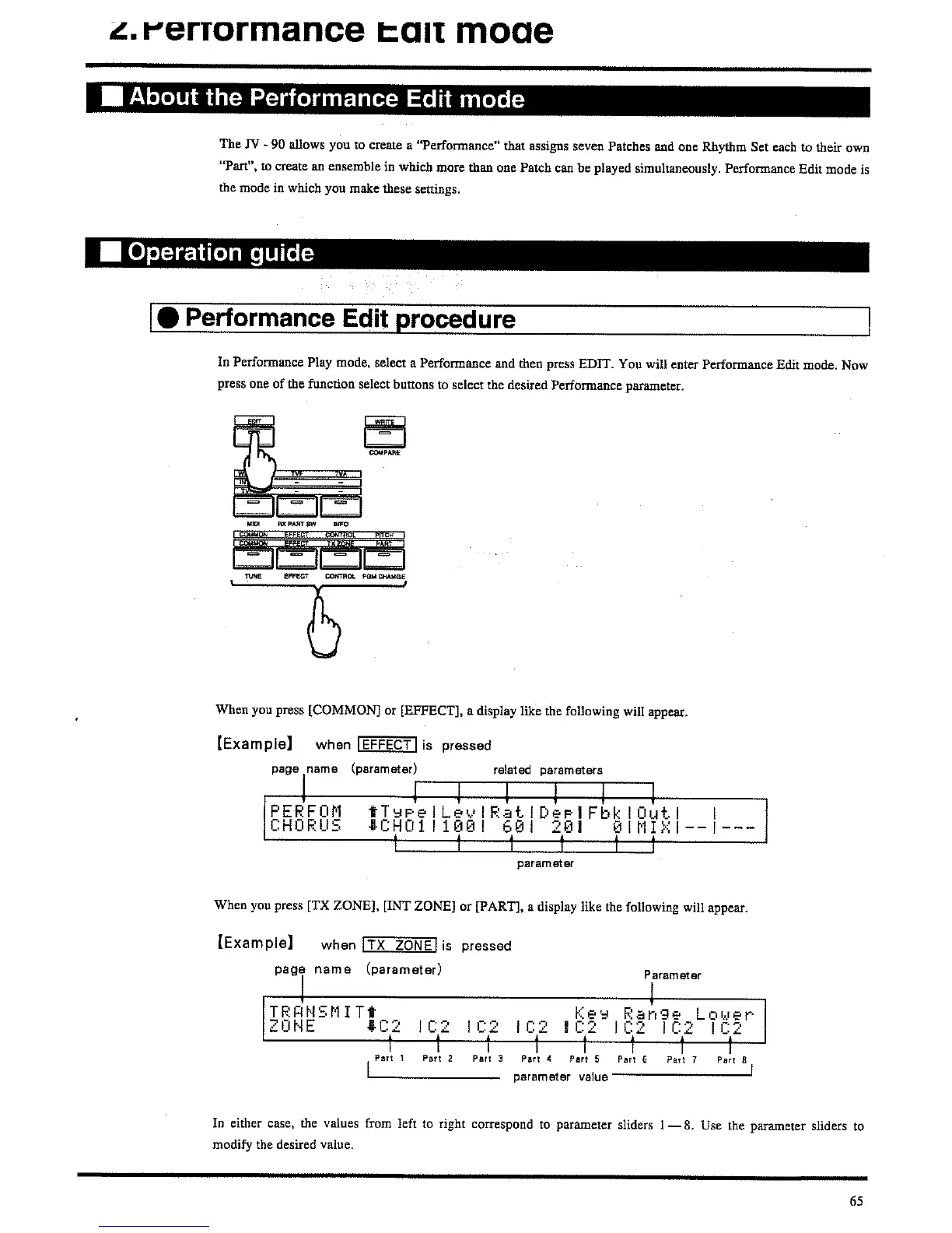 Roland JV-90 - Performance Edit Mode; Performance Edit Procedure