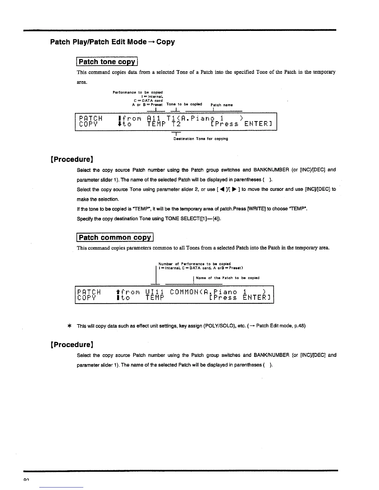 Roland JV-90 - Patch Tone Copy; Patch Common Copy