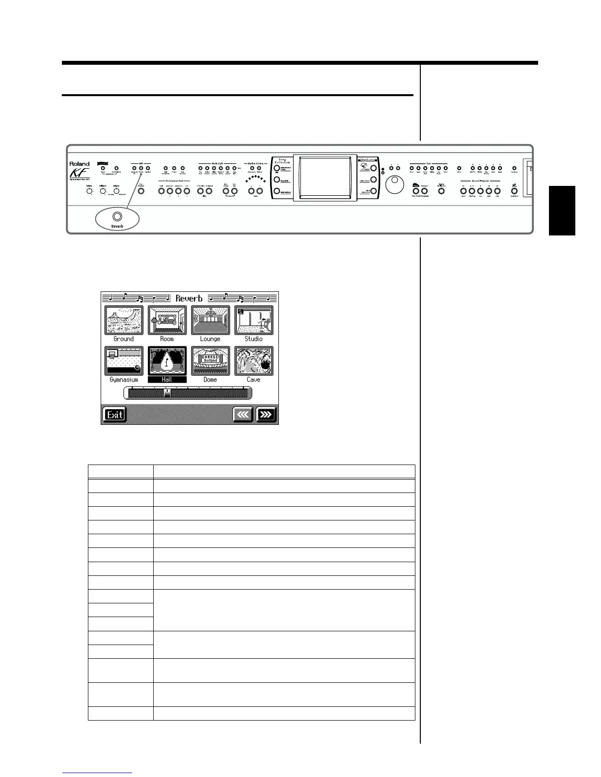 Apply a reverb effect to the notes you play with the KF-7.