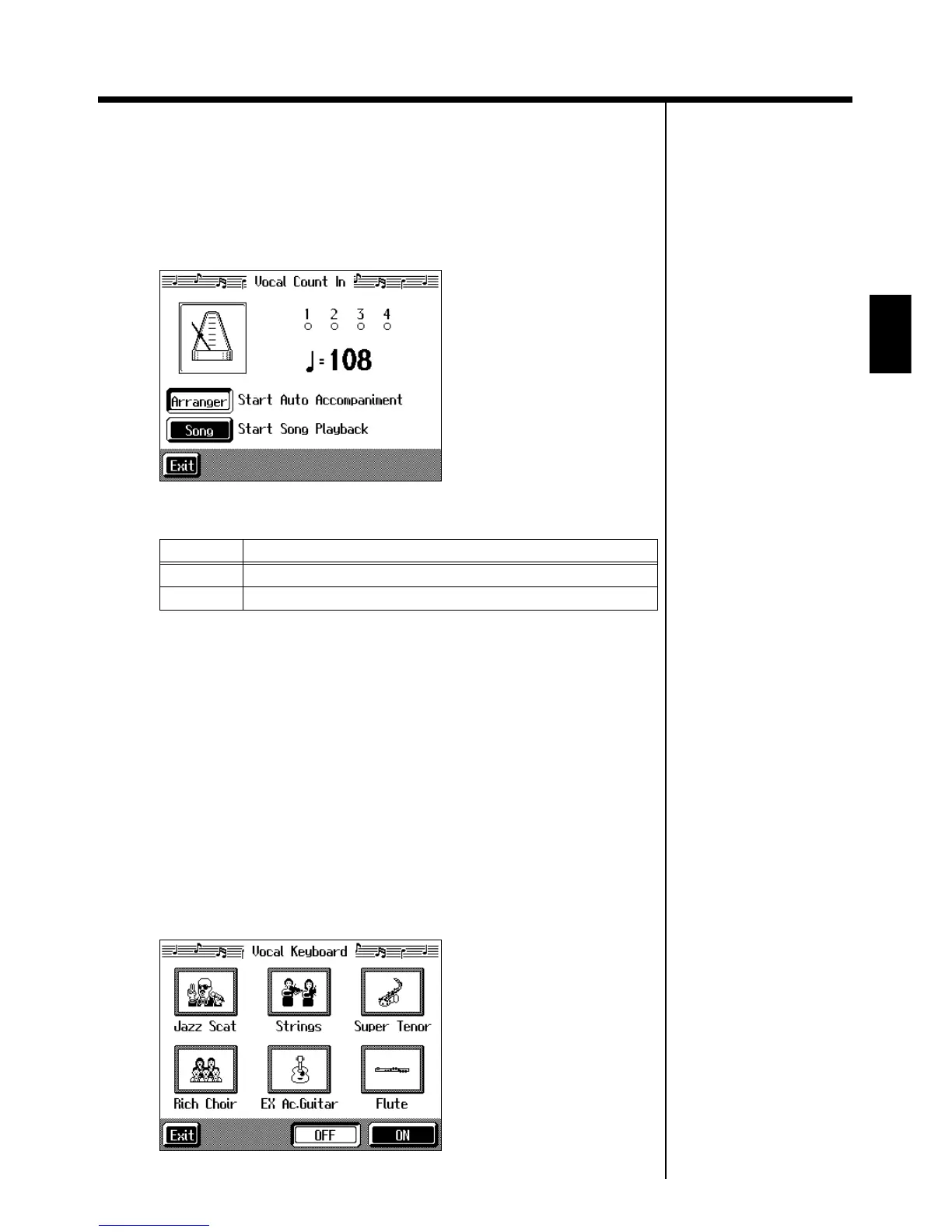1. Touch <Vocal Count In> in Step 2 of “How to select Vocal Effect” (p. 33).