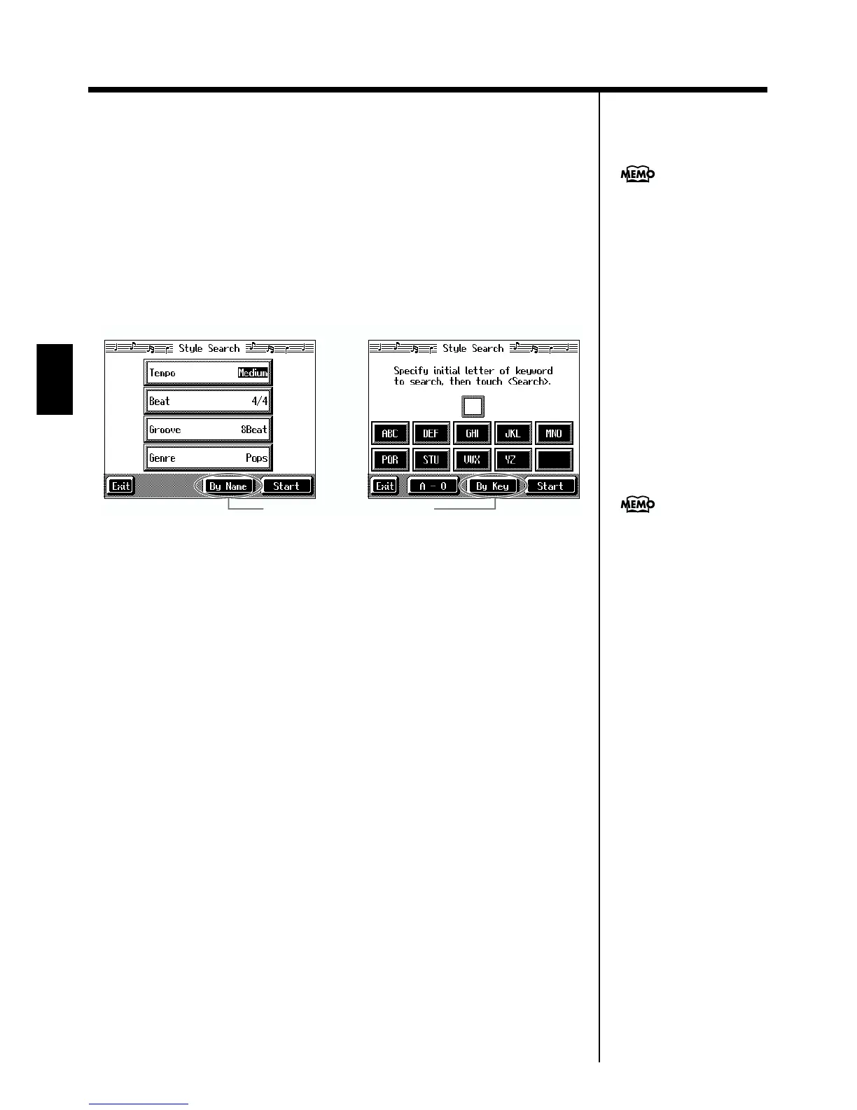Touch a Music Style name to select a Music Style.