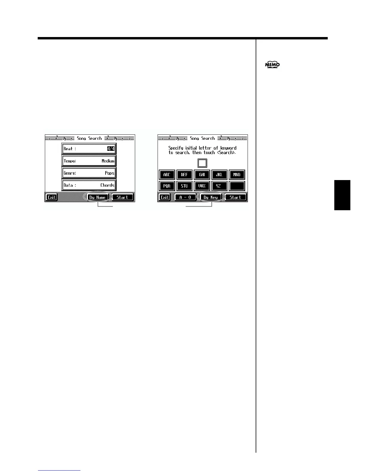 (fingering numbers), and “Any.” By selecting a song containing any of this data, then