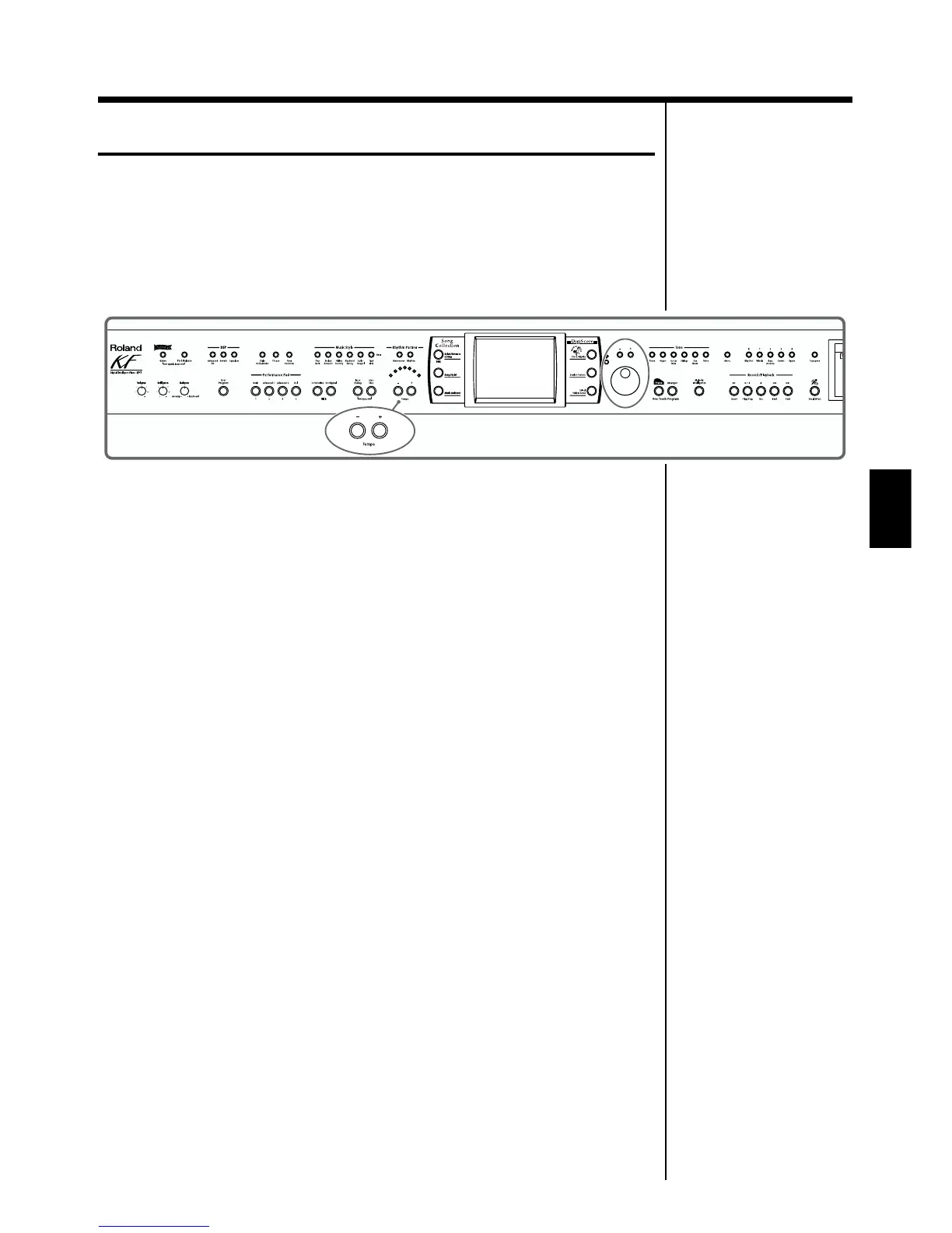 Adjusting the tempo with the Tempo [-] [+] buttons