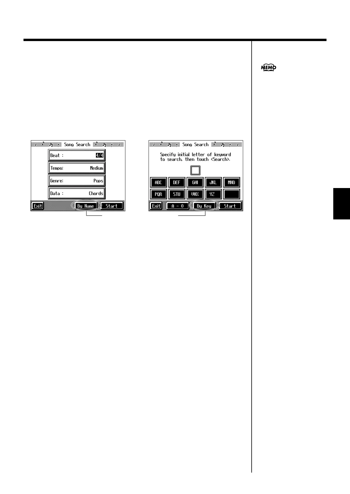 Touch <Exit> to return to the Song Search screen.