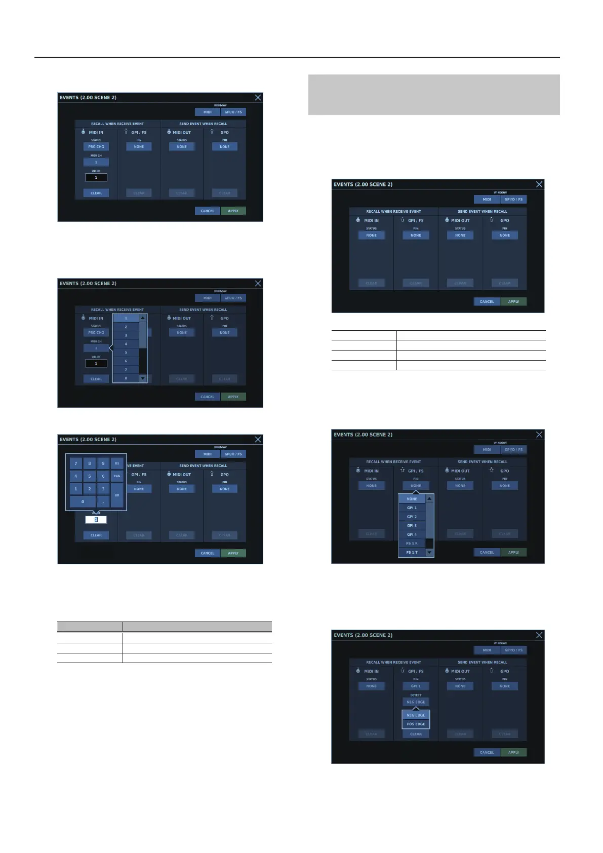 This assigns a scene to a GPI connector or FOOT SW 1 or 2 jack.