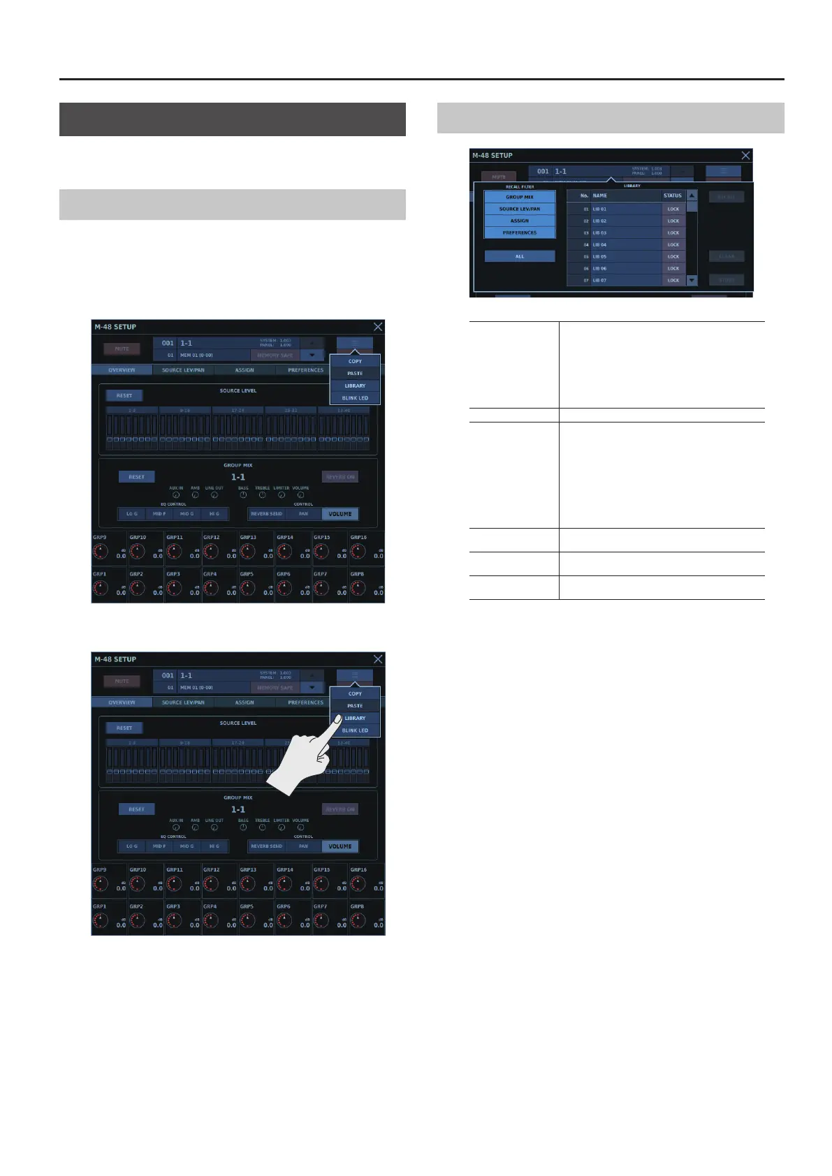 This recalls the library selected using the M-48