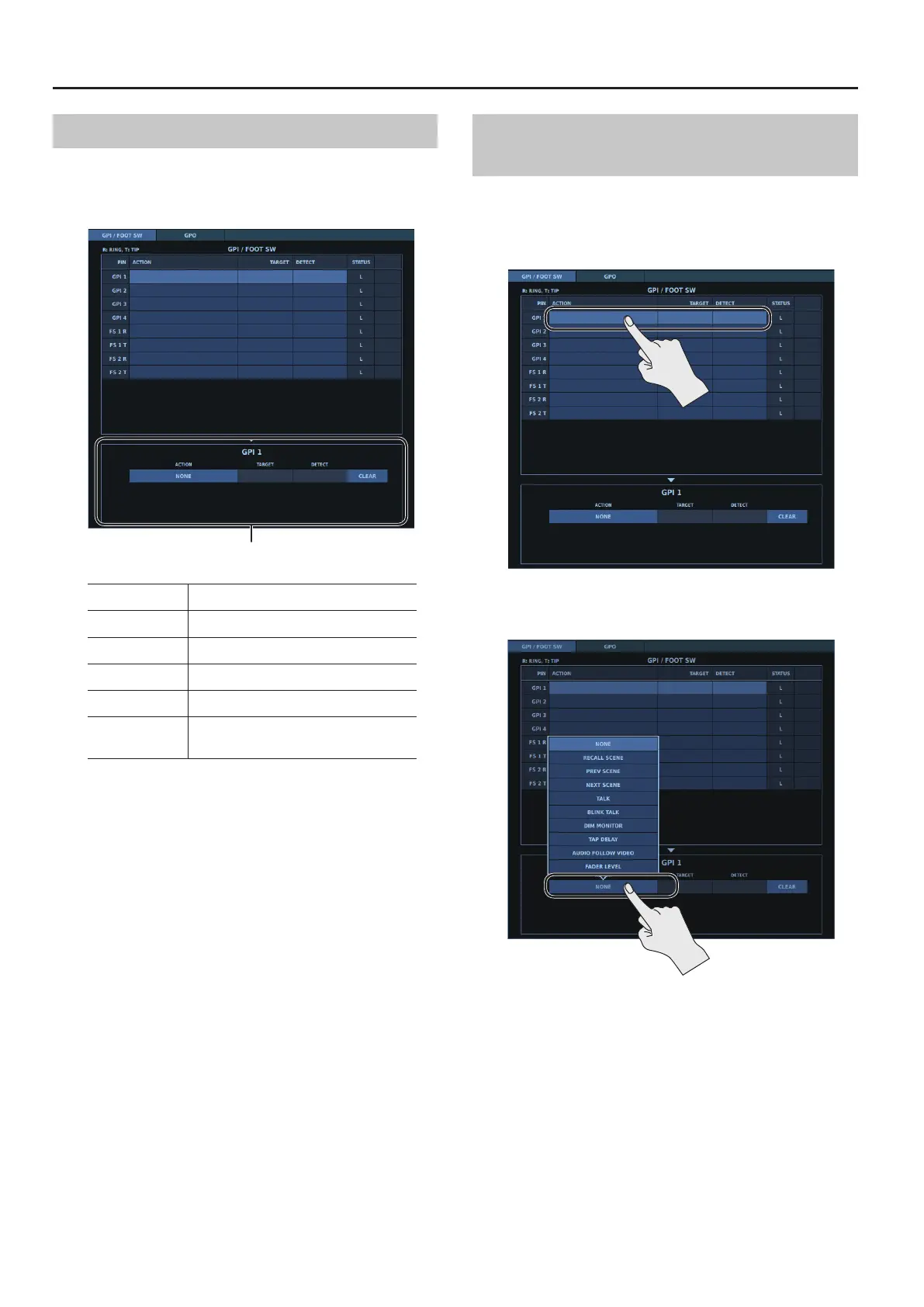 1. Display the GPI/O / FOOT SW window GPI / FOOT SW tab.
