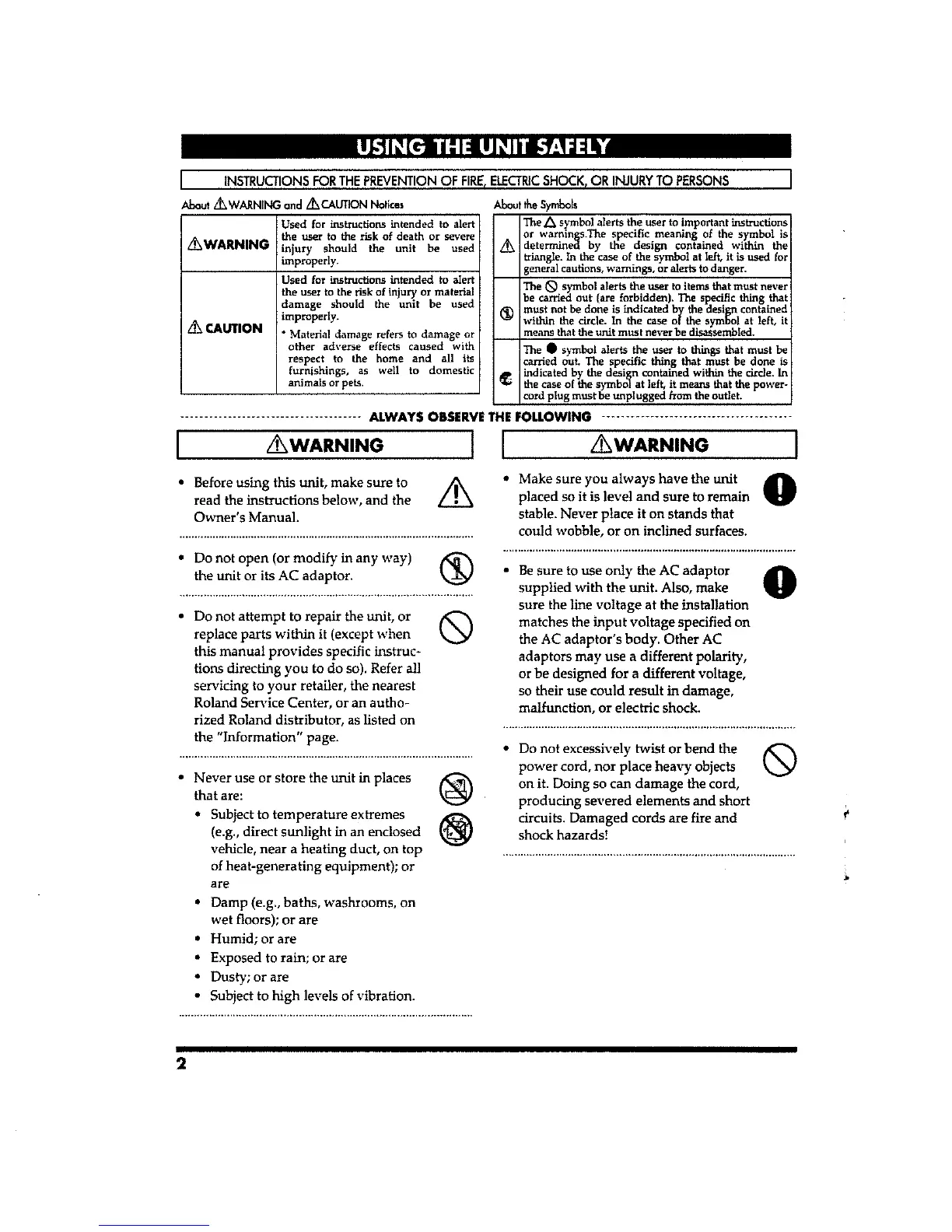 Roland Micro Cube Guitar Amplifier - Using the Unit Safely; About WARNING and CAUTION Notices; About the Symbols
