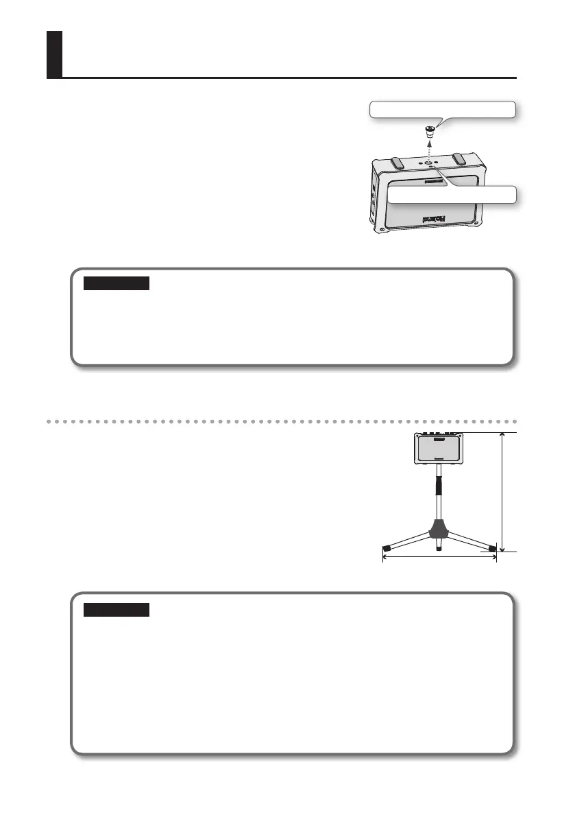 • Lorsque vous utilisez le MOBILE BA avec un pied de micro, ce dernier doit être installé avec précaution