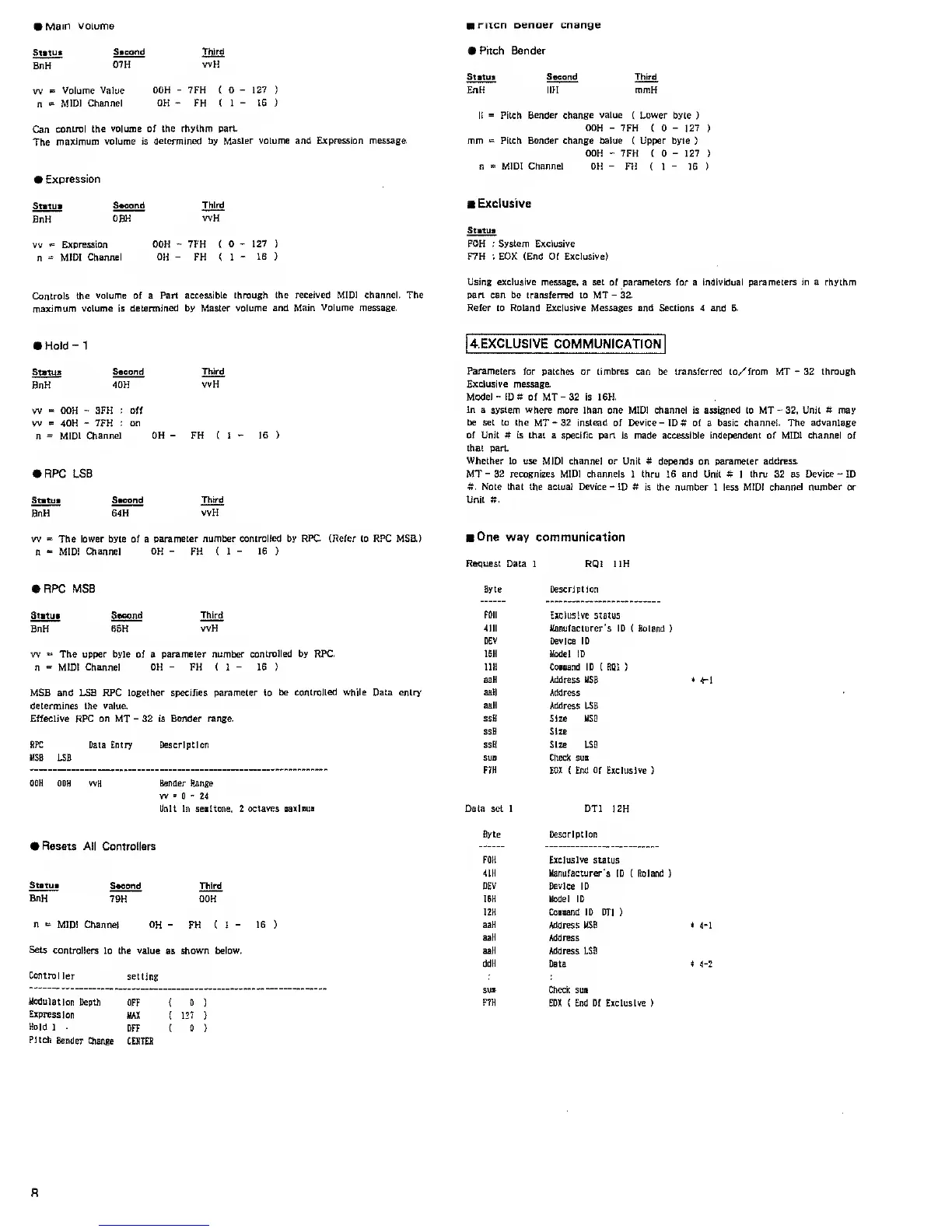 Refer to Roland Exclusive Messages and Sections 4 and 6.