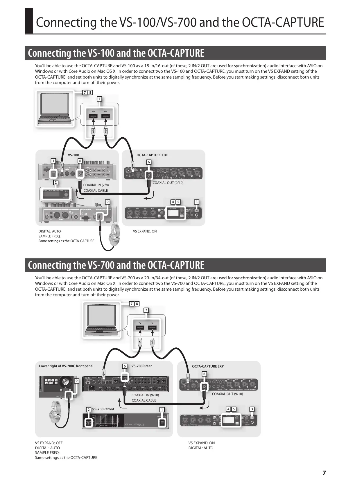 Windows or with Core Audio on Mac OS X. In order to connect two the VS-700 and OCTA-CAPTURE, you must turn on the VS EXPAND setting of the