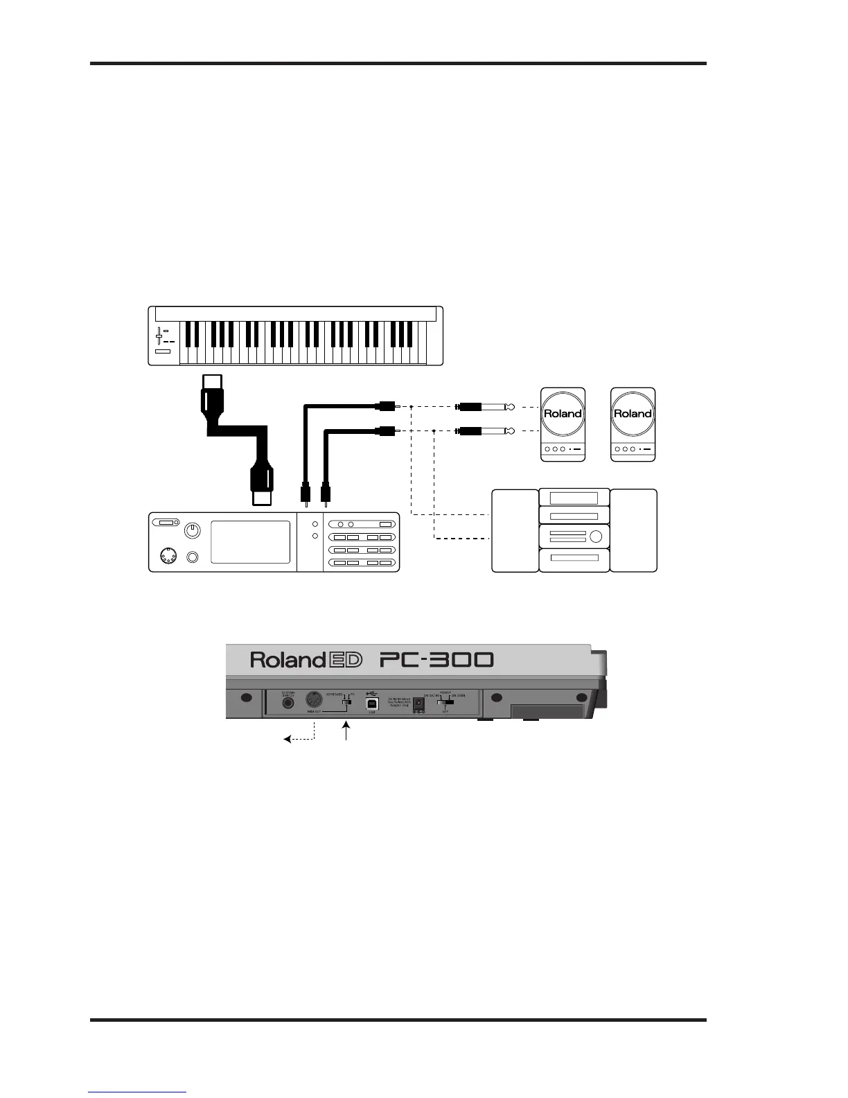 Verbinden Sie die MIDI OUT-Buchse des PC-300 mit dem MIDI IN-Anschluss des