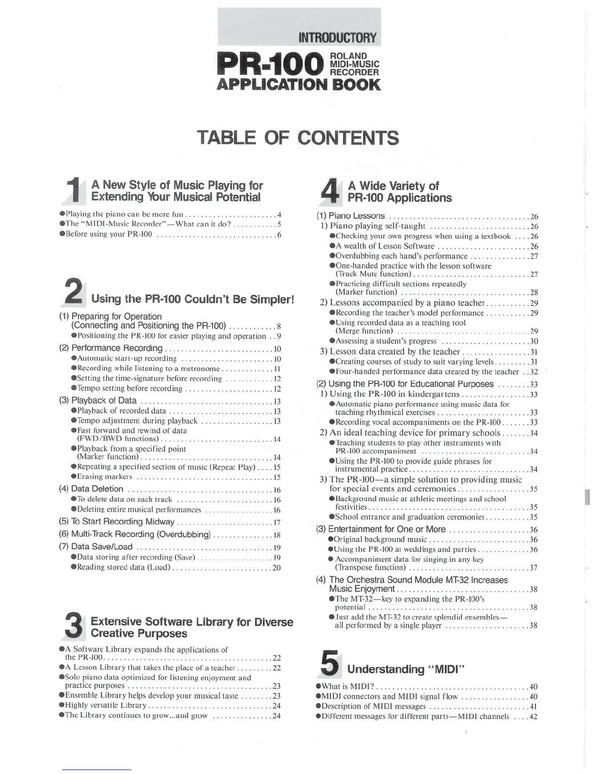 Roland PR-100 - Table of Contents