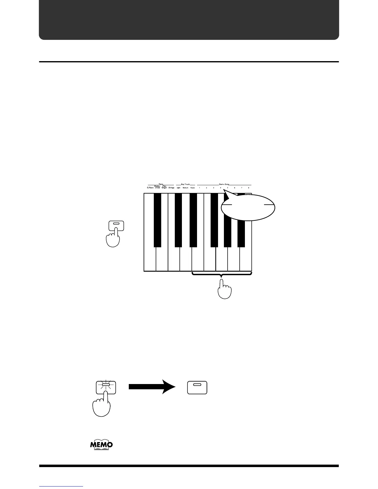 of the keys within the area where “Demo Song” is printed.