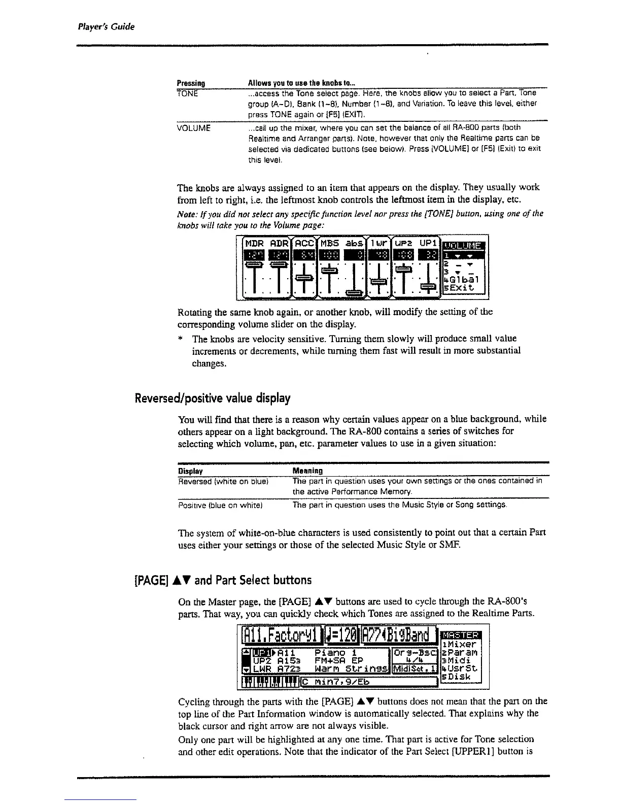 Roland RA-800 - Reversed;Positive Value Display; PAGE and Part Select Buttons