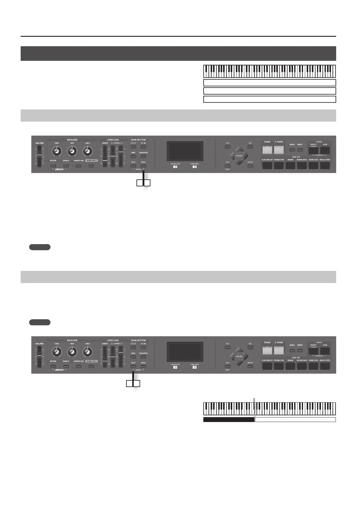 Playing Dierent Tones in Two Dierent Sections of the Keyboard (Split Mode)