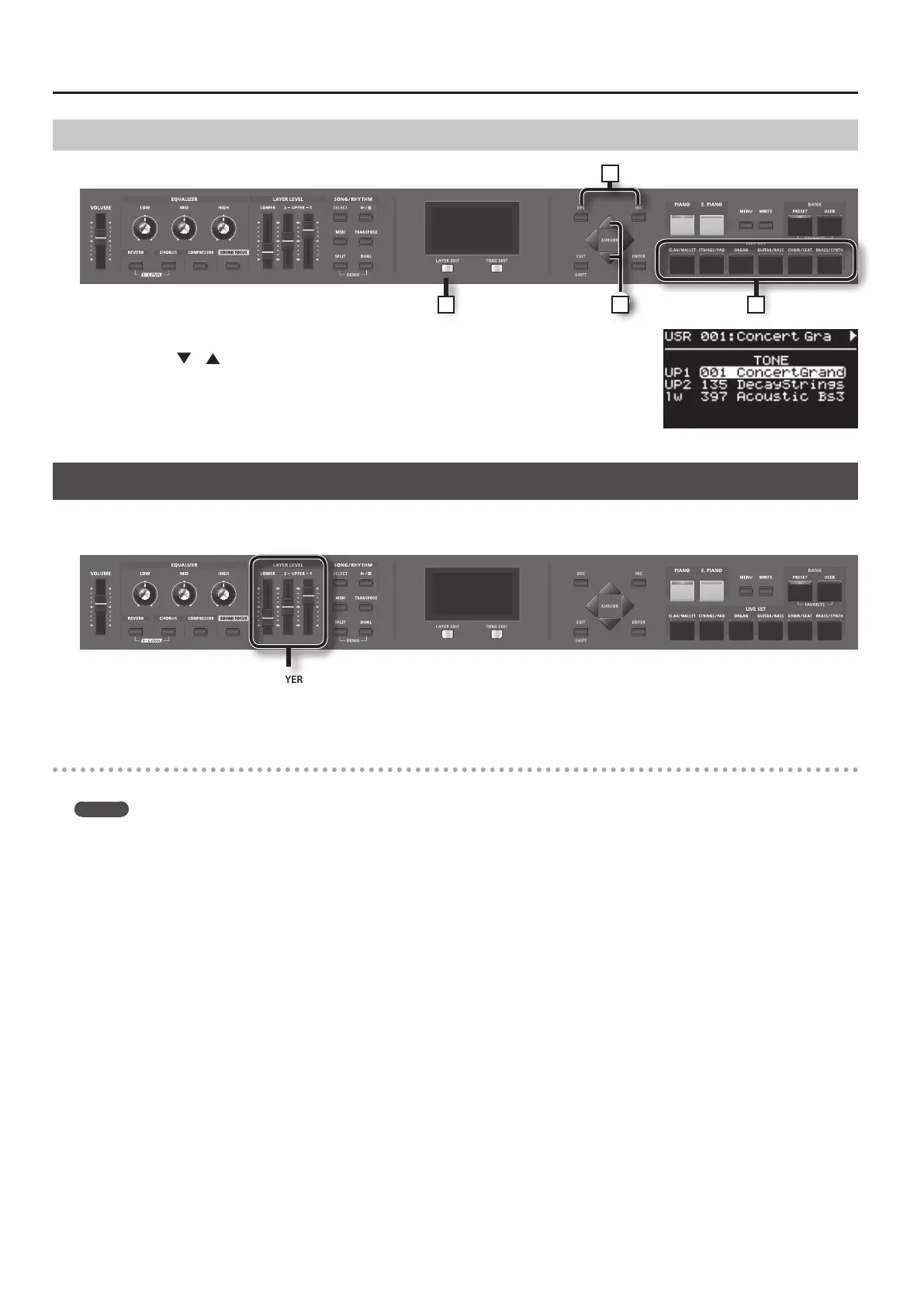 3. Use the LIVE SET buttons to select the tone category, and then use the [DEC] [INC] buttons to