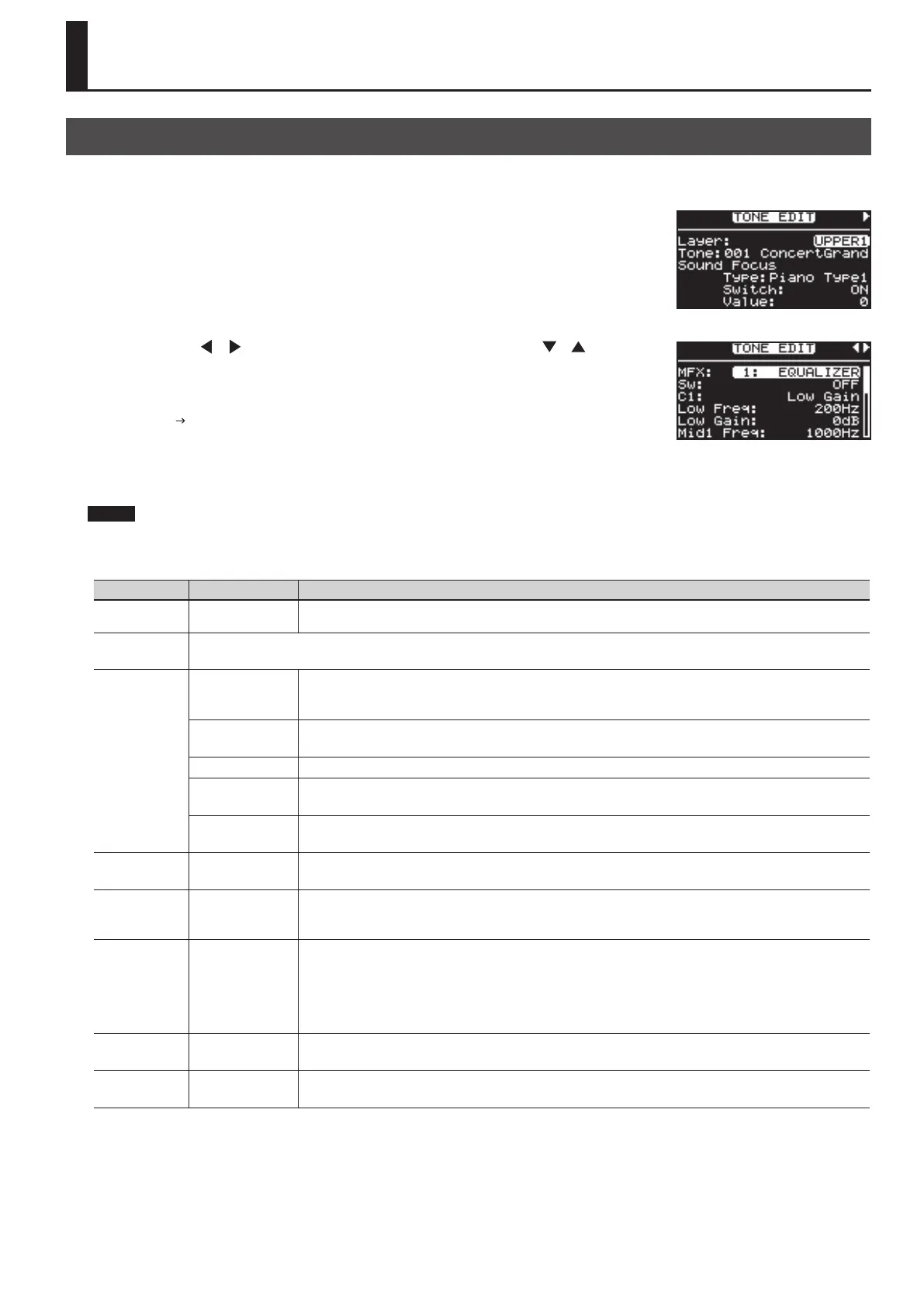 4. When you nish making settings, press the [TONE EDIT] button, extinguishing its indicator.