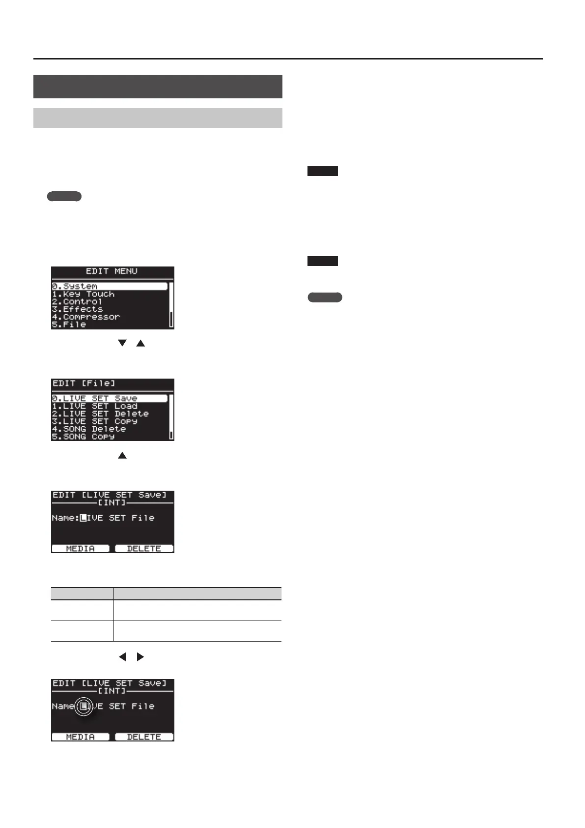 This Live Set le can be saved in the RD-300NX’s internal memory or