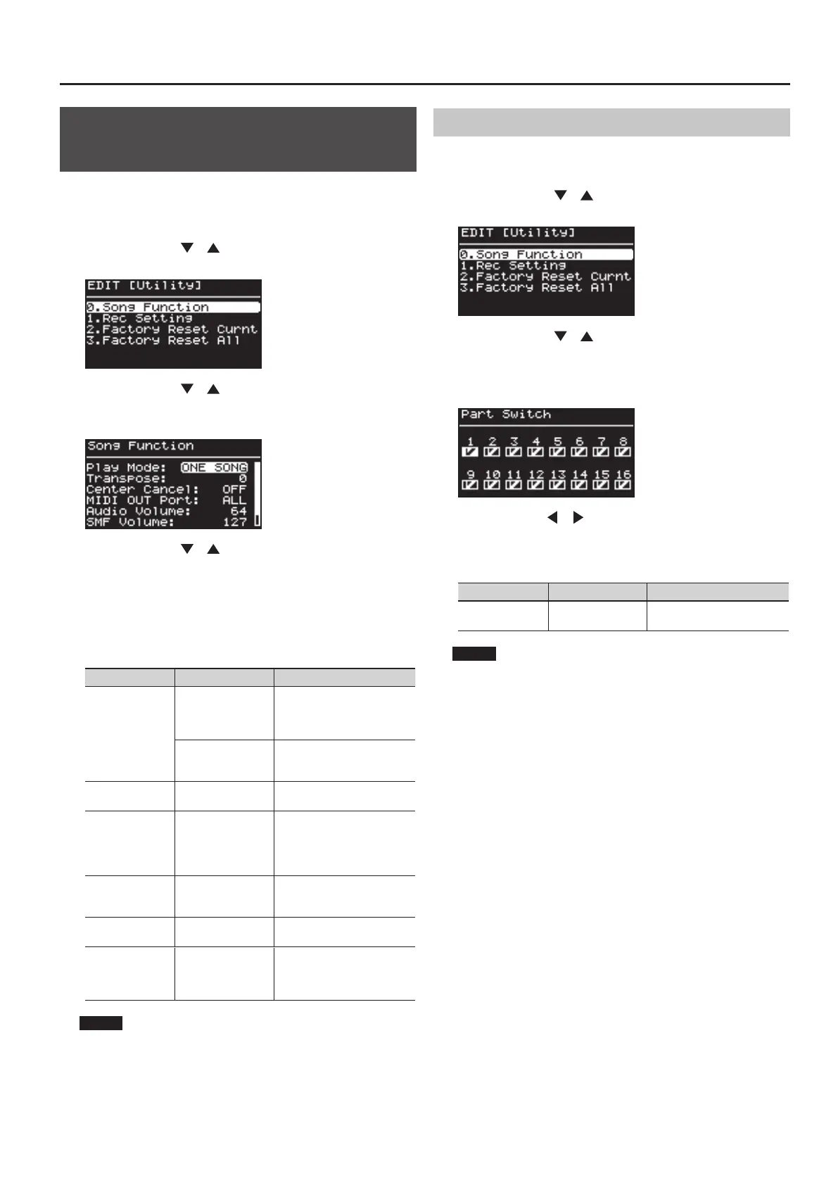 3. Press the Cursor [ ] [ ] buttons to select “0. Song